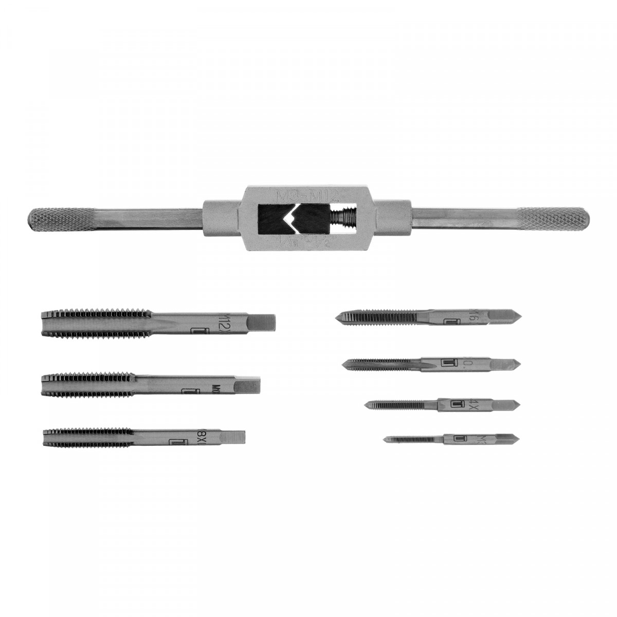 • Быстрый поиск нужного инструмента — на корпусе каждого метчика имеется маркировка с обозначением размера и шага резьбы.