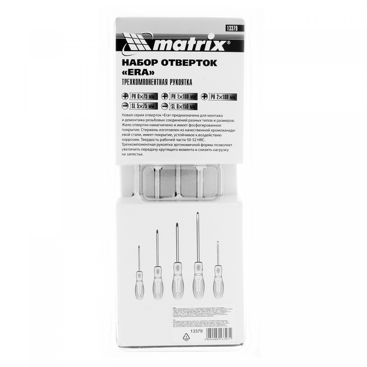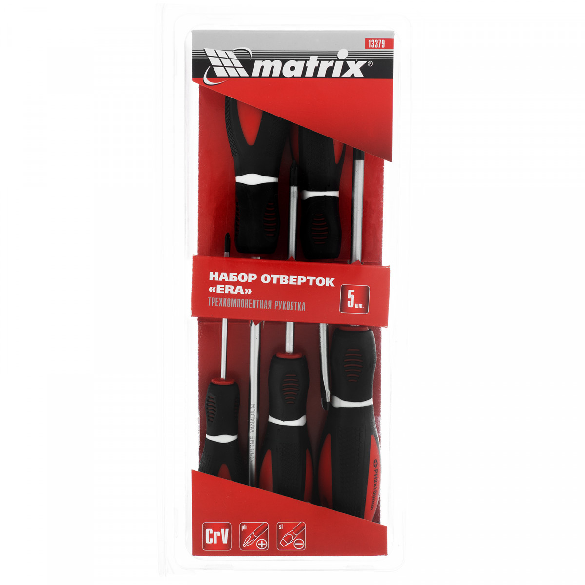 Набор отверток "Era", 5 шт, CrV, трехкомпонентная рукоятка Matrix