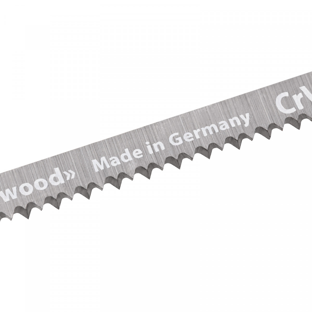 • Максимально чистый рез — полотна изготовлены в Германии на высокотехнологичном производстве, подверглись лазерной раскройке профиля, автоматизированной заточке и шлифовке.
