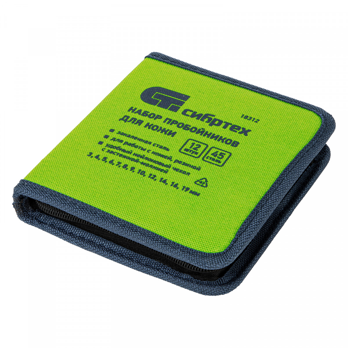 Набор пробойников для кожи 3 4 5 6 7 8 9 10 12 14 16 19 мм, 12 шт, чехол Сибртех
