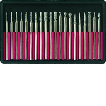Шарошки предназначены для обработки и резки изделий из мрамора, керамики, древесины, металла, бетона с помощью гравировальной машинки. В набор входят шарошки, предоставляющих возможность обработки поверхностей различного профиля. Оснастка изготовлена из инструментальной стали. Режущая кромка выполнена из технических алмазов.
