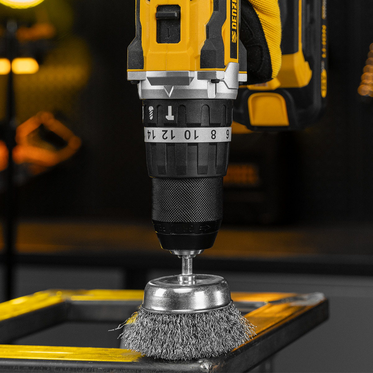 Набор щеток для дрели, 1 Плоская 50мм, 2 Чашки 25-50мм, шпилька, нерж. вит. проволока Denzel