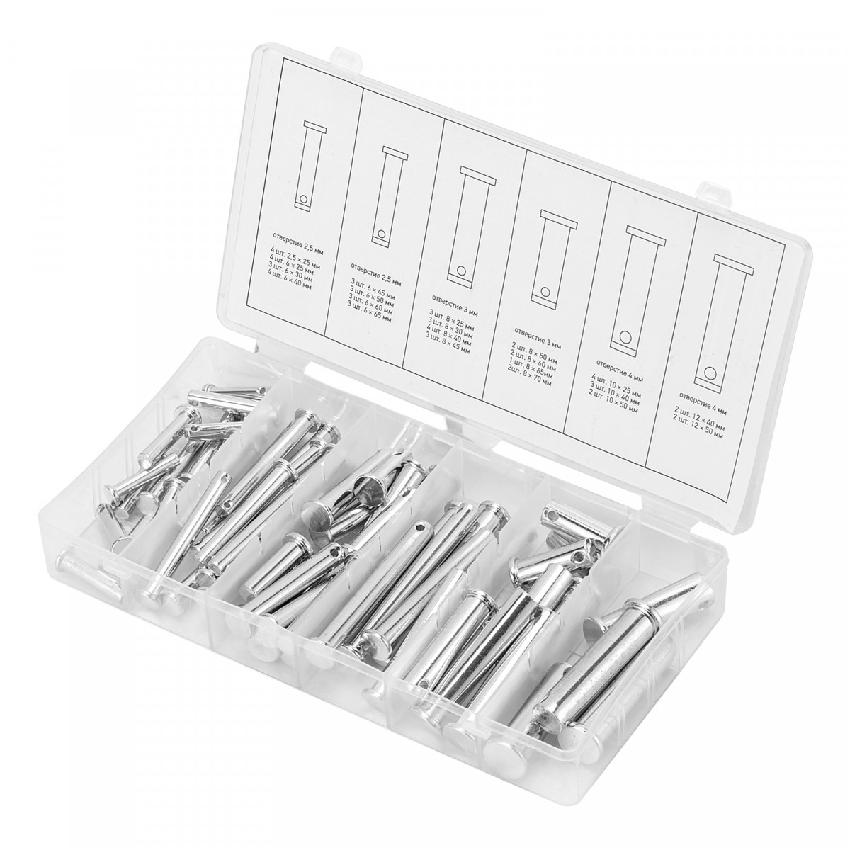 Набор штифтов с головкой и отверстием под шплинт, 60 предметов Сибртех