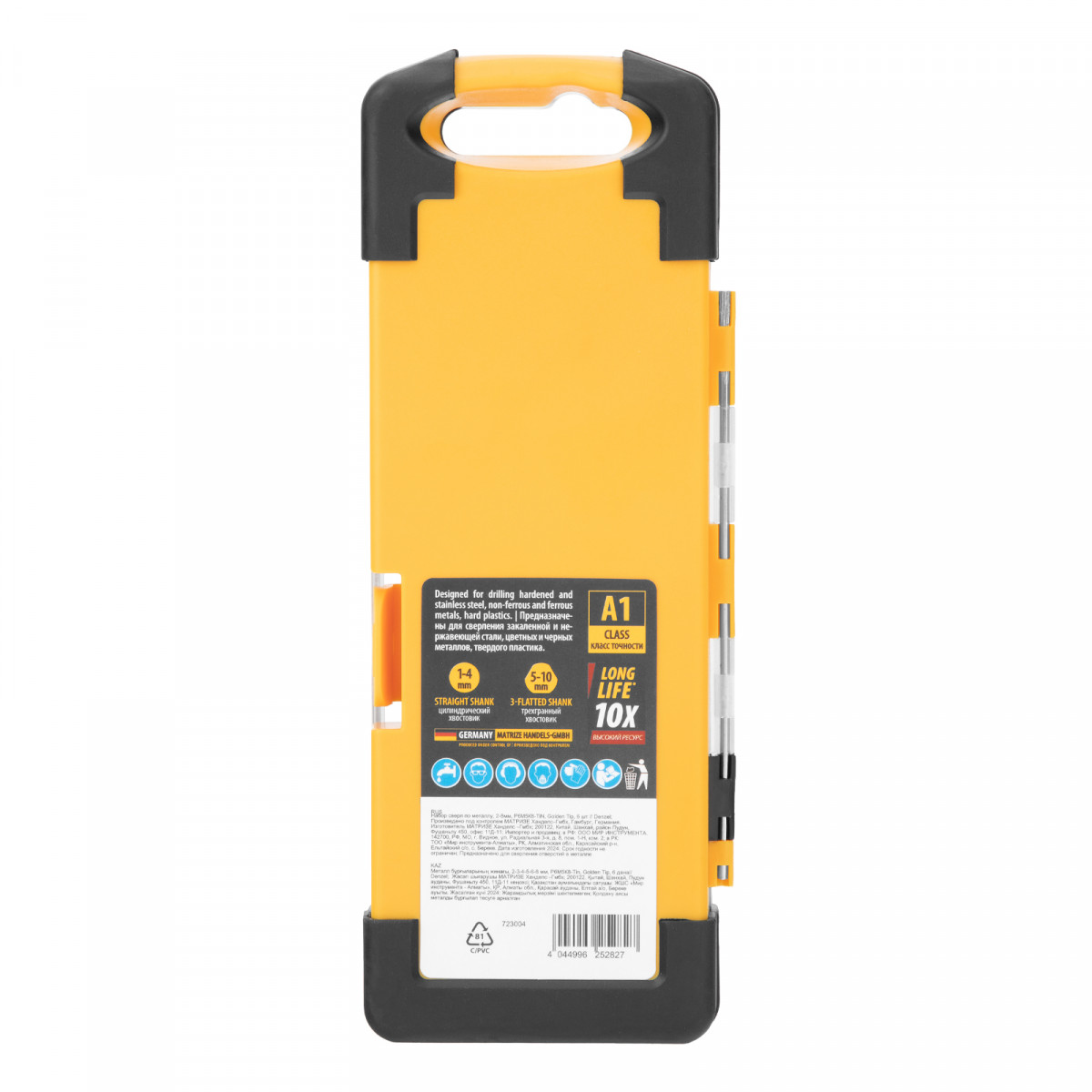 - Удобная упаковка — сверла поставляются в пластиковом кейсе с шаблоном для определения диаметра сверл.
