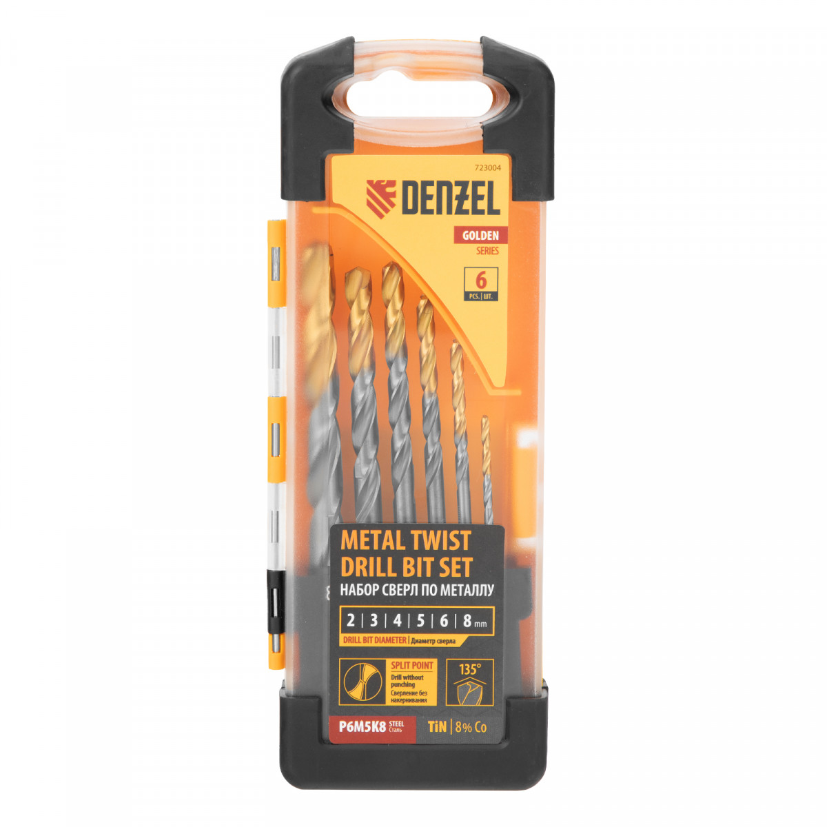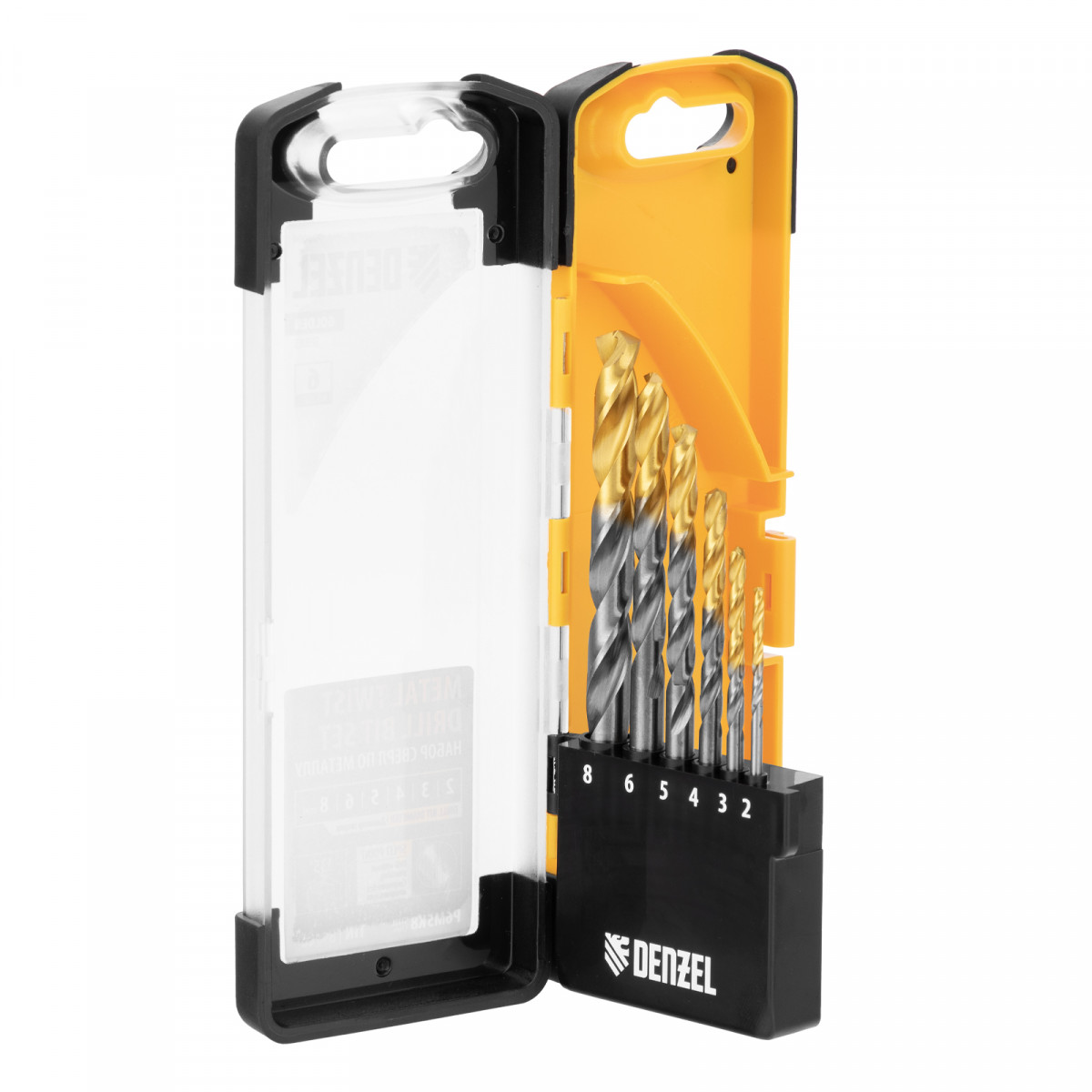 Набор сверл по металлу, 2-8мм, Р6М5К8-TiN, Golden Tip, 6 шт Denzel
