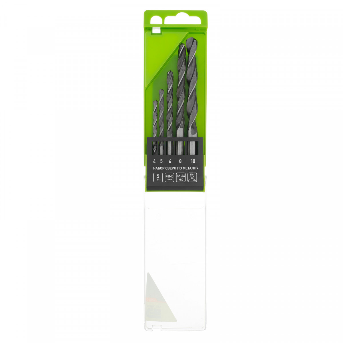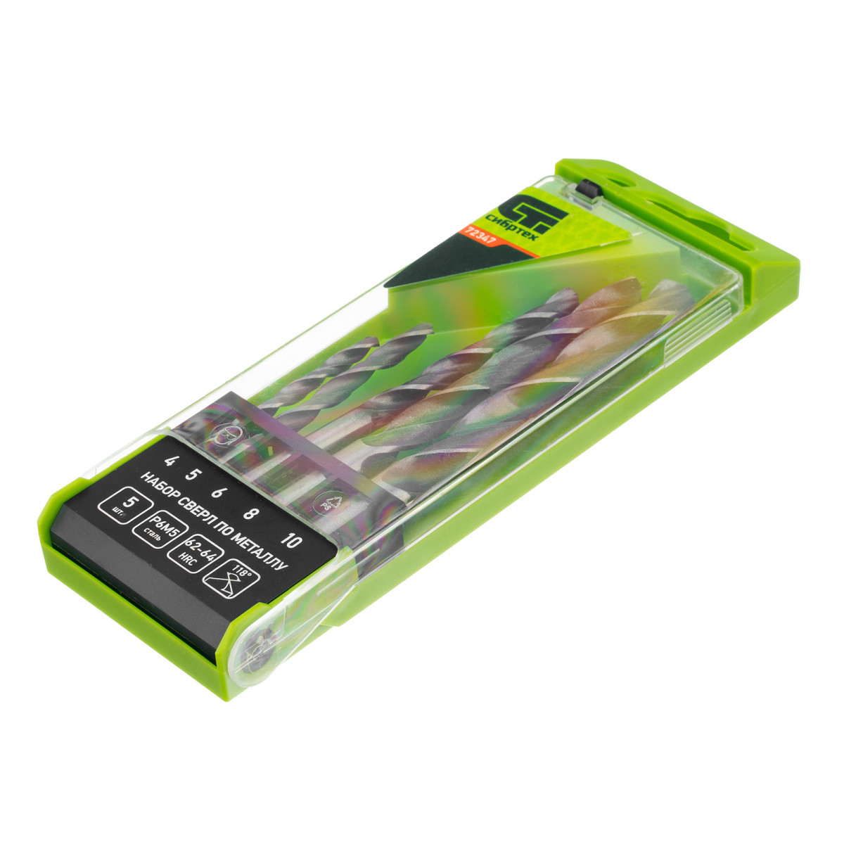 Набор сверл по металлу, 4-10 мм, 5 шт, Р6М5, пластиковый кейс, Сибртех