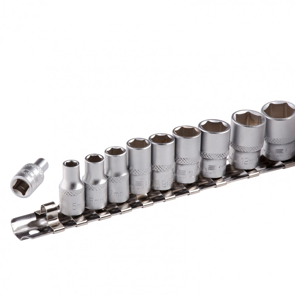Головка торцевая, 4 мм - 1 штГоловка торцевая, 5 мм - 1 штГоловка торцевая, 6 мм - 1 штГоловка торцевая, 7 мм - 1 штГоловка торцевая, 8 мм - 1 штГоловка торцевая, 9 мм - 1 штГоловка торцевая, 10 мм - 1 штГоловка торцевая, 11 мм - 1 штГоловка торцевая, 12 мм - 1 штГоловка торцевая, 13 мм - 1 штМеталлическая плашка-держатель - 1 шт