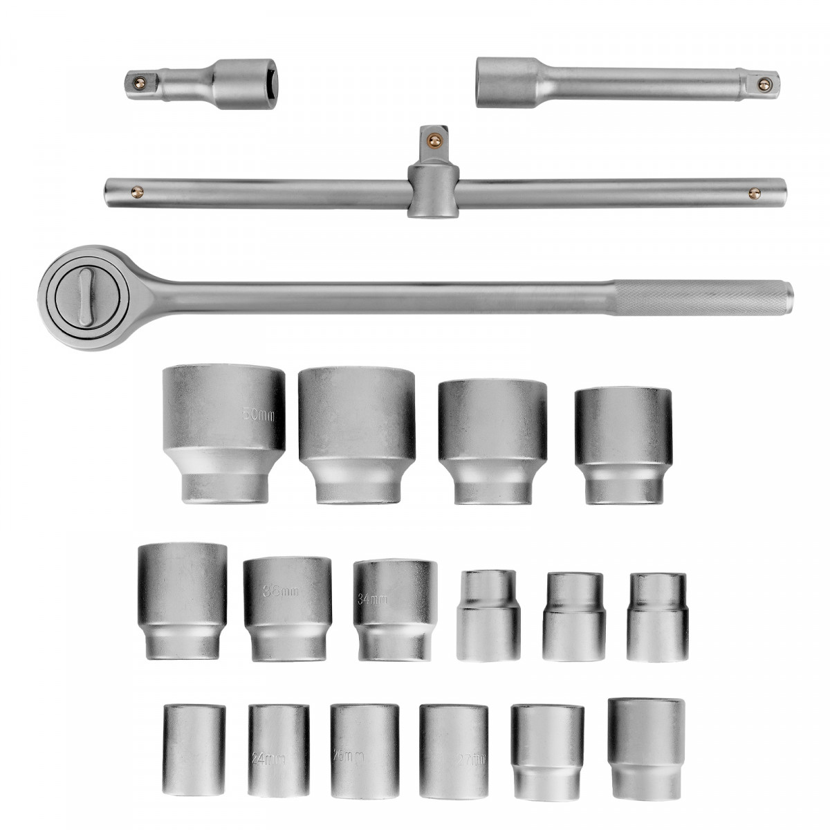 Набор торцевых головок Matrix 13536 с присоединительным квадратом 3/4" и 12-гранным профилем используется для работы с резьбовыми крепежными элементами размером от 19 до 50 мм. Применяется для ремонта и обслуживания автобусов и грузовых автомобилей.