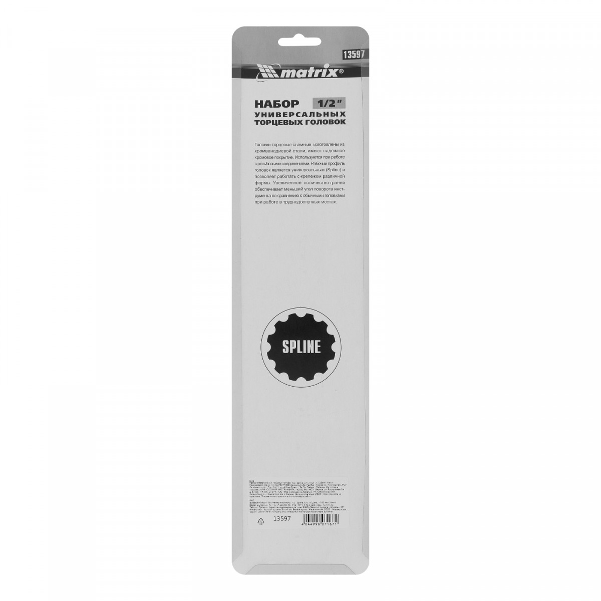 Набор универсальных торцевых головок 1/2", Spline, CrV, 10-22мм, 10 штук Matrix