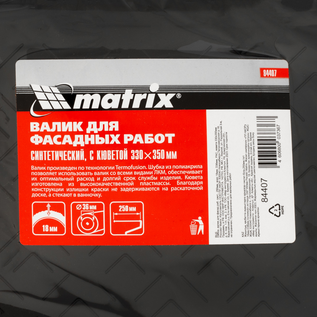 Набор, валик для фасадных работ синтетический, 250 мм, ворс 18 мм, D 36 мм, РАС, кювета 330 х 350 мм Matrix