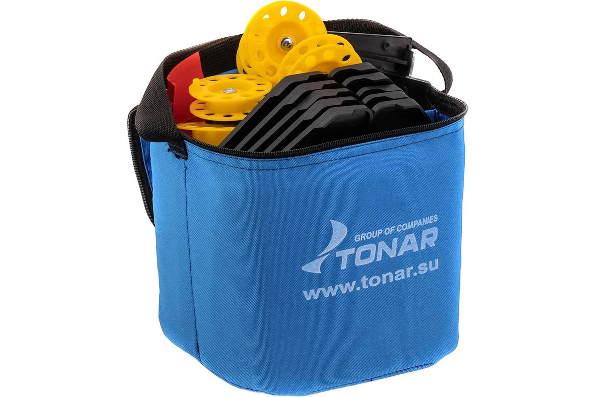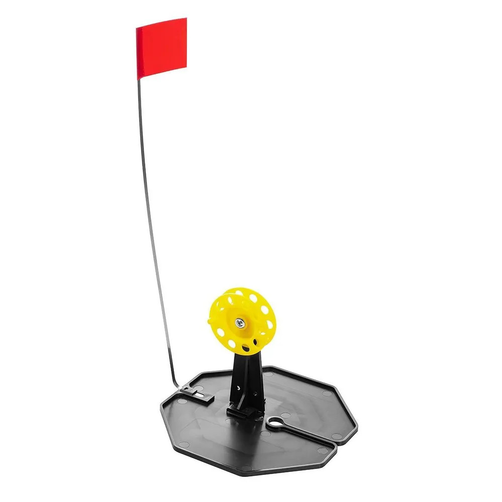 Набор жерлиц на подставке Тонар ЖЗ-03 d-210 мм, катушка d-85 мм, 10 шт 00000136346 используется для подледной ловли рыбы.