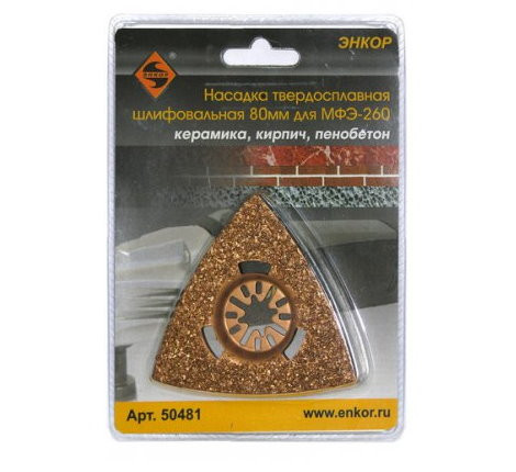 Шлифовальная насадка Энкор 50481 используется при работе универсальной вибромашиной МФЭ-260. Насадка твердосплавная и предназначена для работ по керамике, кирпичу, пенобетону.