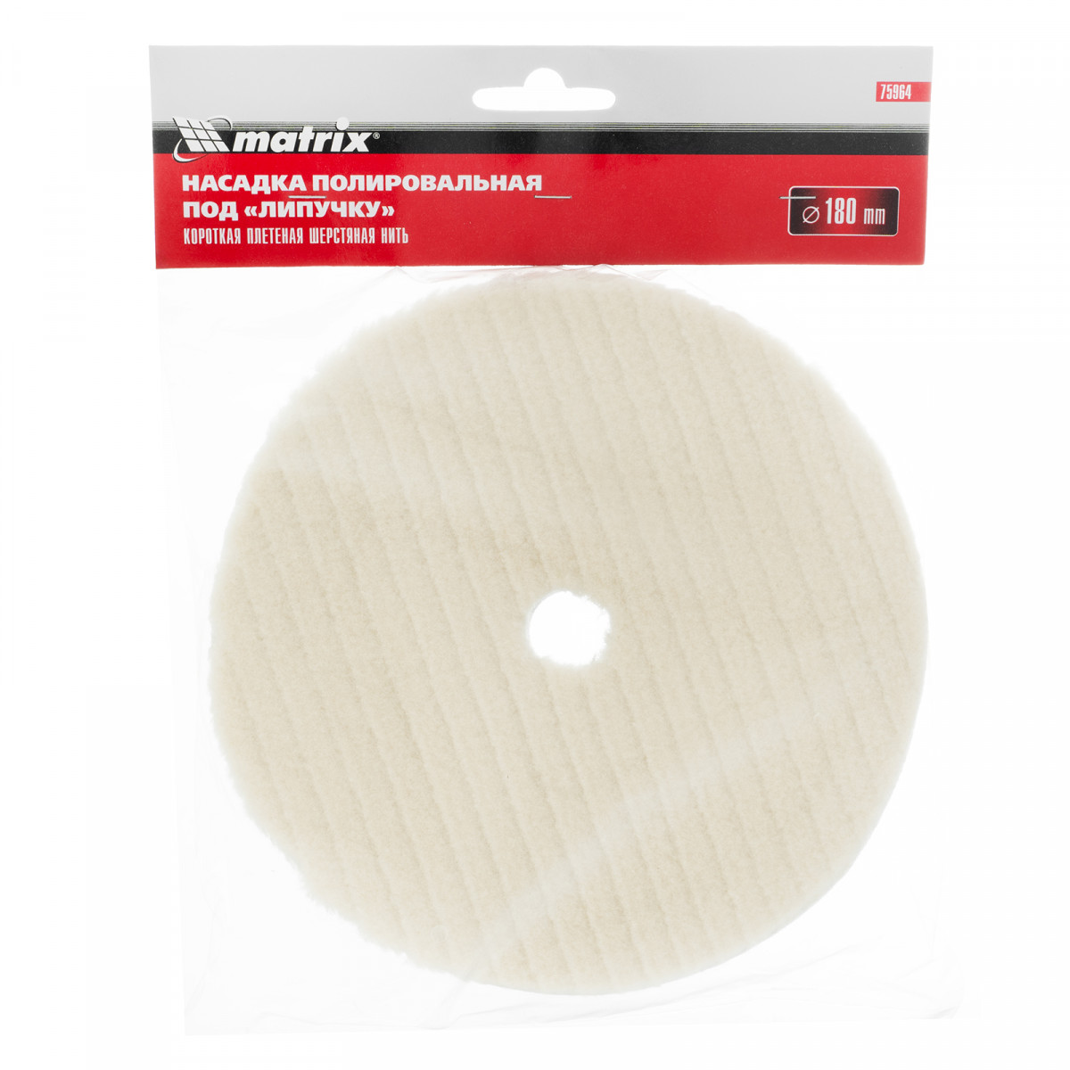 Полировальная насадка «под липучку» Matrix 75964 с короткой плетеной шерстяной нитью устанавливается на опорную тарелку дрели или шлифовальной машинки, работающей с оснасткой диаметром 180 мм. Ее используют при финишной обработке металлических, стеклянных и окрашенных поверхностей. Короткий ворс быстро устраняет мелкие трещины и царапины, а также придает блеск. Насадка пригодится для работ в автосервисе или личном гараже.