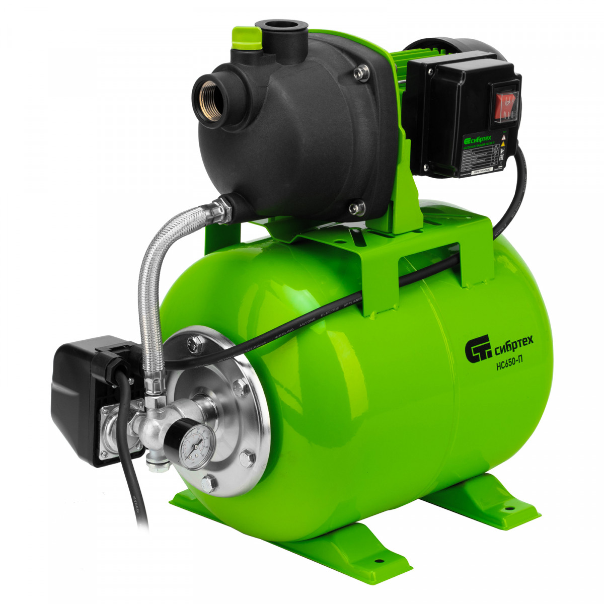 Насосная станция НС650-П, 650 Вт, напор 37 м, 3200 л/ч, ресивер 19 л Сибртех