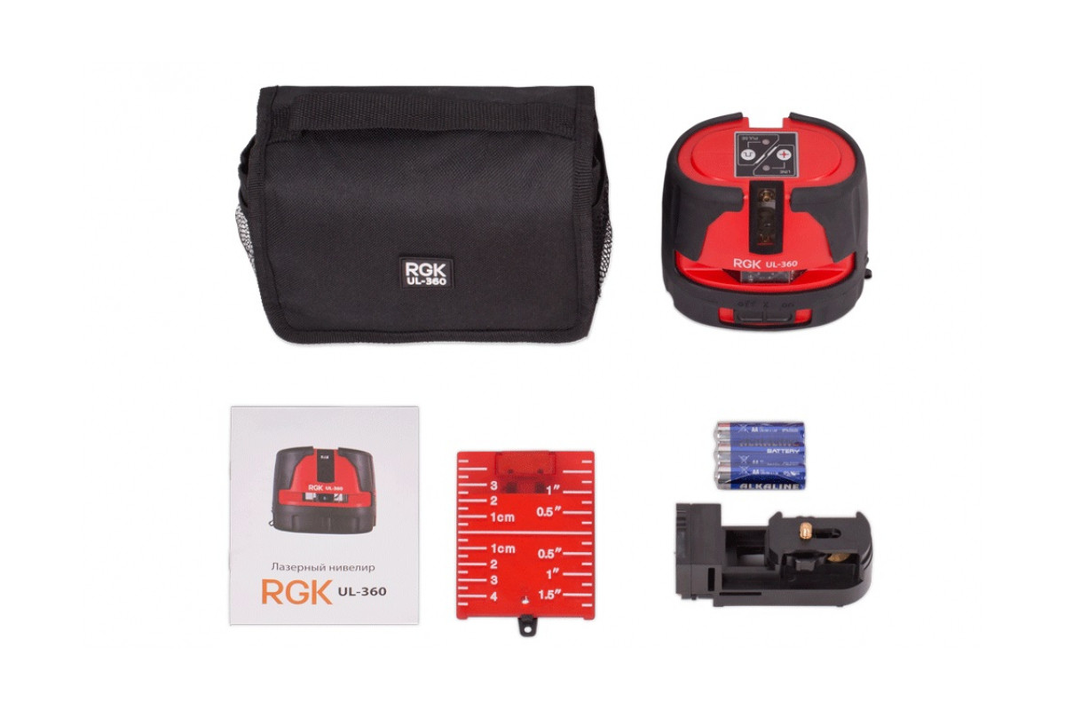 Лазерный нивелир RGK UL-360 представляет собой компактный прибор весом всего 0.5 кг. Компенсатор относится к маятниковому типу и гарантирует быстрое выравнивание модели в автоматическом режиме. 2 горизонтальных луча с разверткой 360 градусов и 2 вертикальных луча