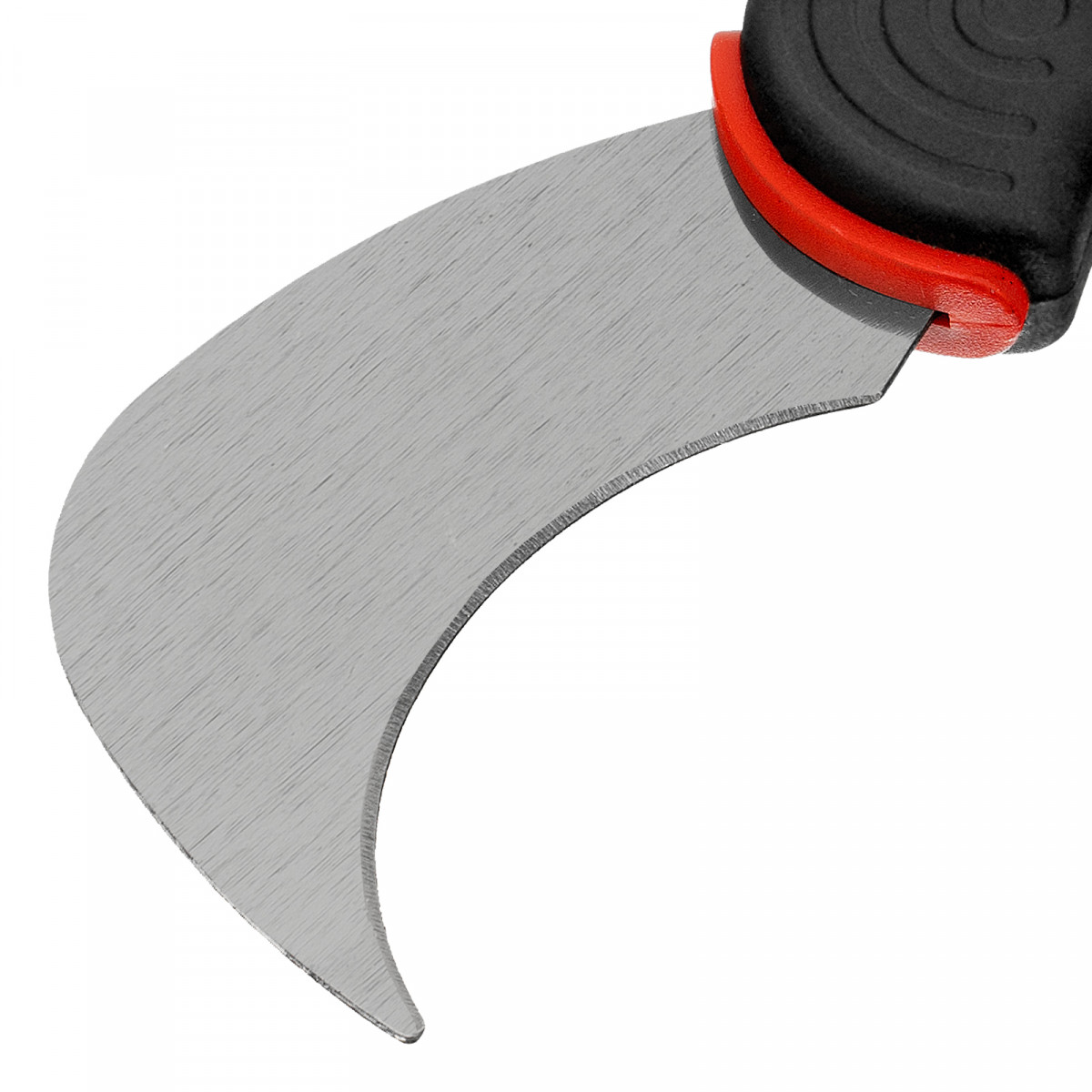 Нож Matrix 78989 длиной 180 мм, с двухкомпонентной рукояткой, применяется для разрезания мягких напольных покрытий. Острое лезвие длиной 70 мм легко справляется с линолеумом, ковролином и другими материалами. Изогнутая форма полотна предотвращает повреждение рабочей кромки, если резка происходит на твердой поверхности. Инструмент используется во время проведения отделочных работ.