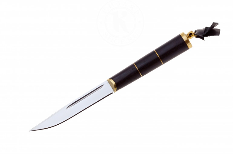 Полная длина: 210 мм.Длина клинка: 100 мм.Толщина клинка: 3,7 мм.Заточка: клиновая.Ножны: Ножны из натуральной кожи.Форма клинка: традиционная форма клинка.Материал клинка: коррозионно-стойкая сталь.Конструкция: черен надет на хвостовик, идущий по всей длине рукоятки и притянут винтом.Примечание *: не относится к холодному оружию.Рукоятка: черный граб, латунь.