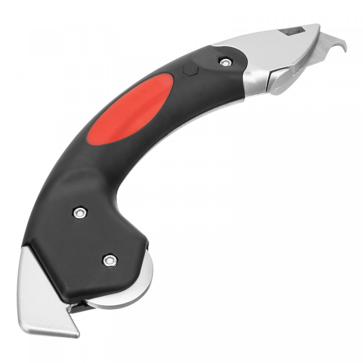 • Быстрое разрезание напольных и кровельных покрытий — нож комплектуется двумя лезвиями, в том числе крючкообразным.
