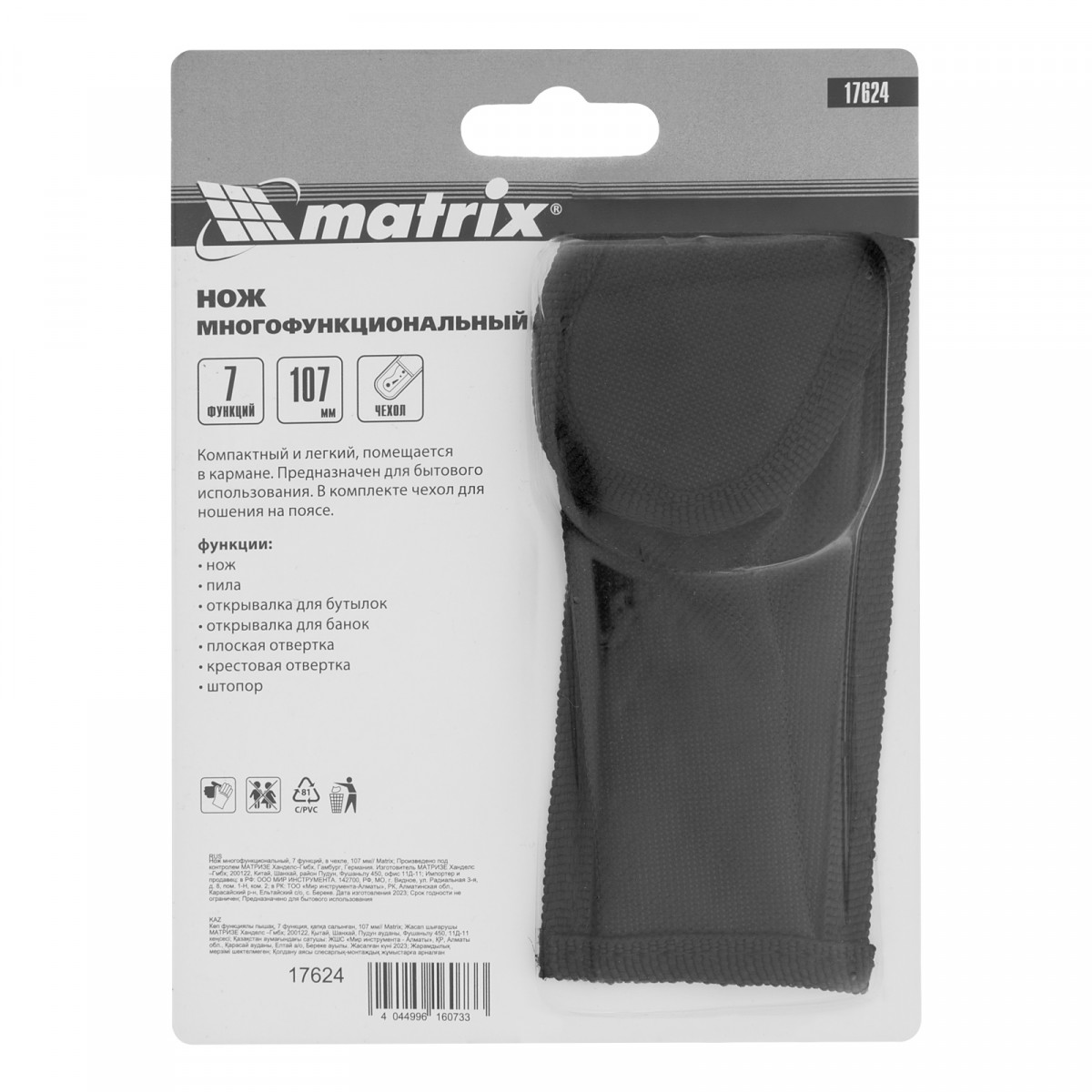 Нож многофункциональный, 7 функций, в чехле, 107 мм Matrix