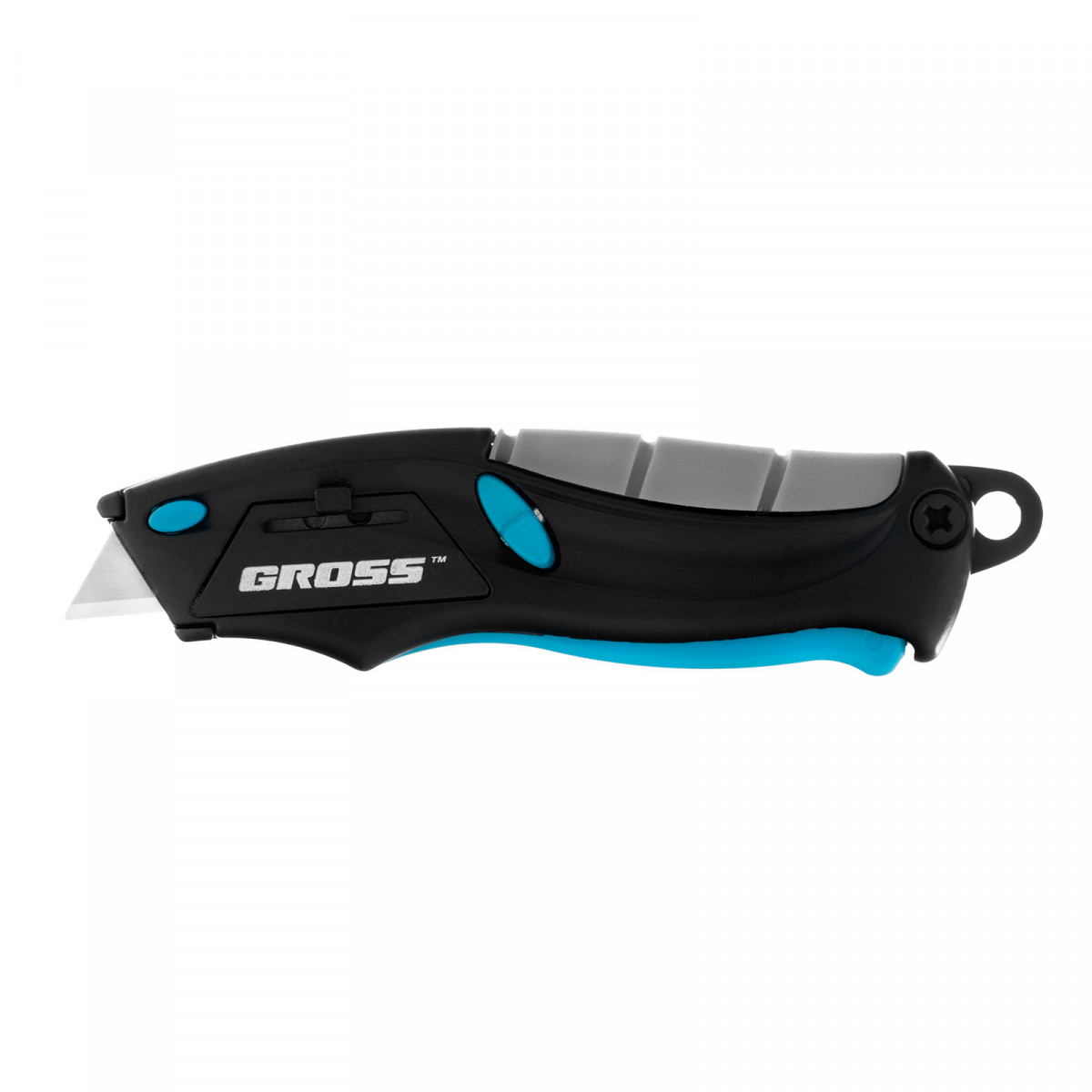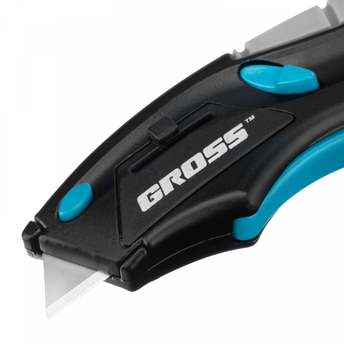 Нож ремонтно-монтажный мини, трехкомпонентная рукоятка, авто выброс, возврат лезвия, 100 мм, 2 запасных лезвия Gross