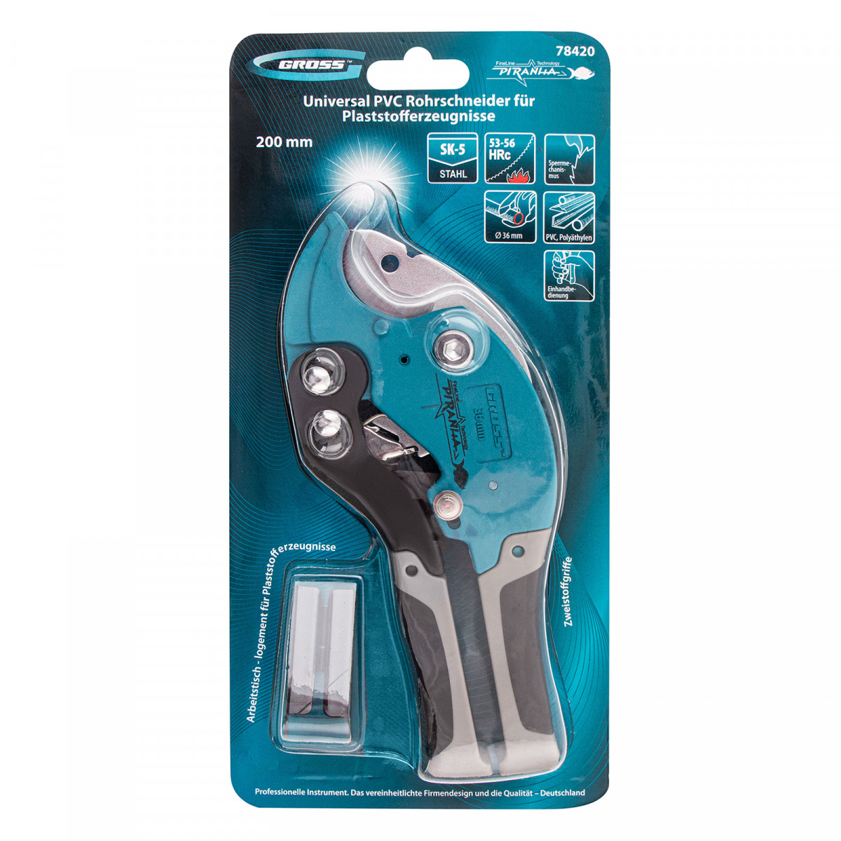 Ножницы для резки изделий из ПВХ, D до 36 мм, двухкомпонентные рукоятки, рабочий стол для плоских изделий Gross