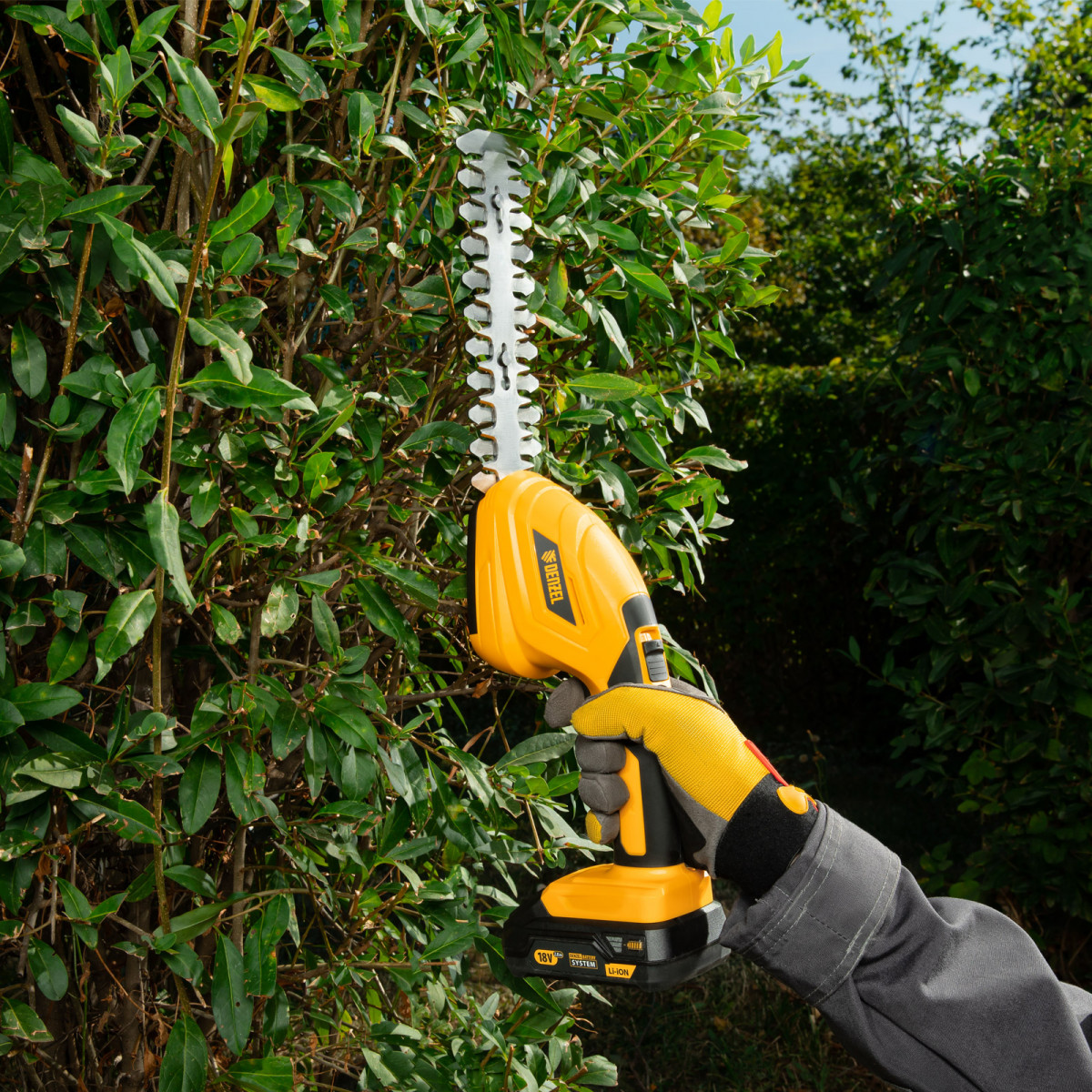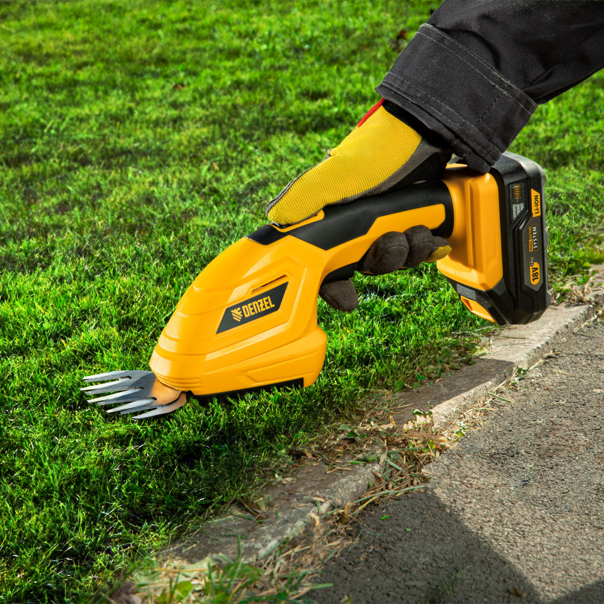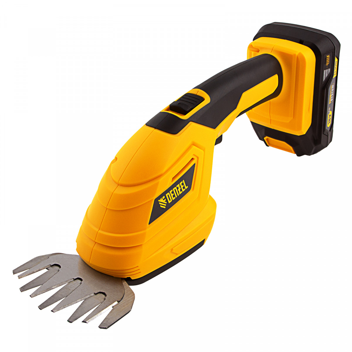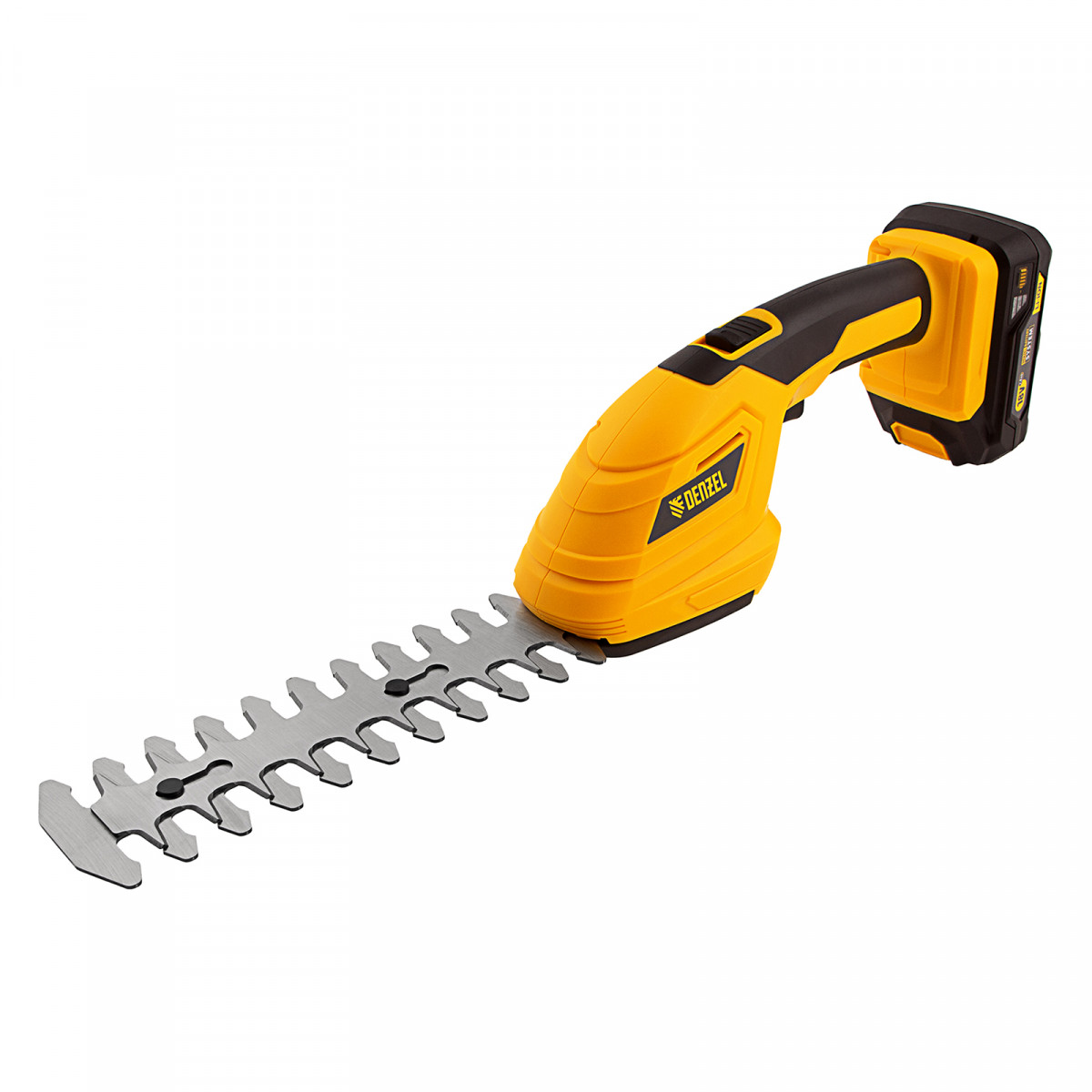Аккумуляторные ножницы-кусторез Denzel CGS-100 59430 с батареей 18В Li-Ion предназначены для срезания травы, стрижки кустарников, листвы и тонких побегов деревьев диаметром до 8 мм. Инструмент оптимален для создания живой изгороди на дачном участке, создания ландшафтных скульптур из декоративных растений, подравнивания растительности вдоль заборов и бордюров.,Ножницы-кусторез не зависят от сети электропитания, а значит, использовать их можно в отдаленных участках сада. Аккумулятор Denzel 18В Li-Ion с интеллектуальной системой распознавания нагрузки обеспечивает стабильную работу инструмента со скоростью 1200 ход/мин и эффективное выполнение поставленных задач.