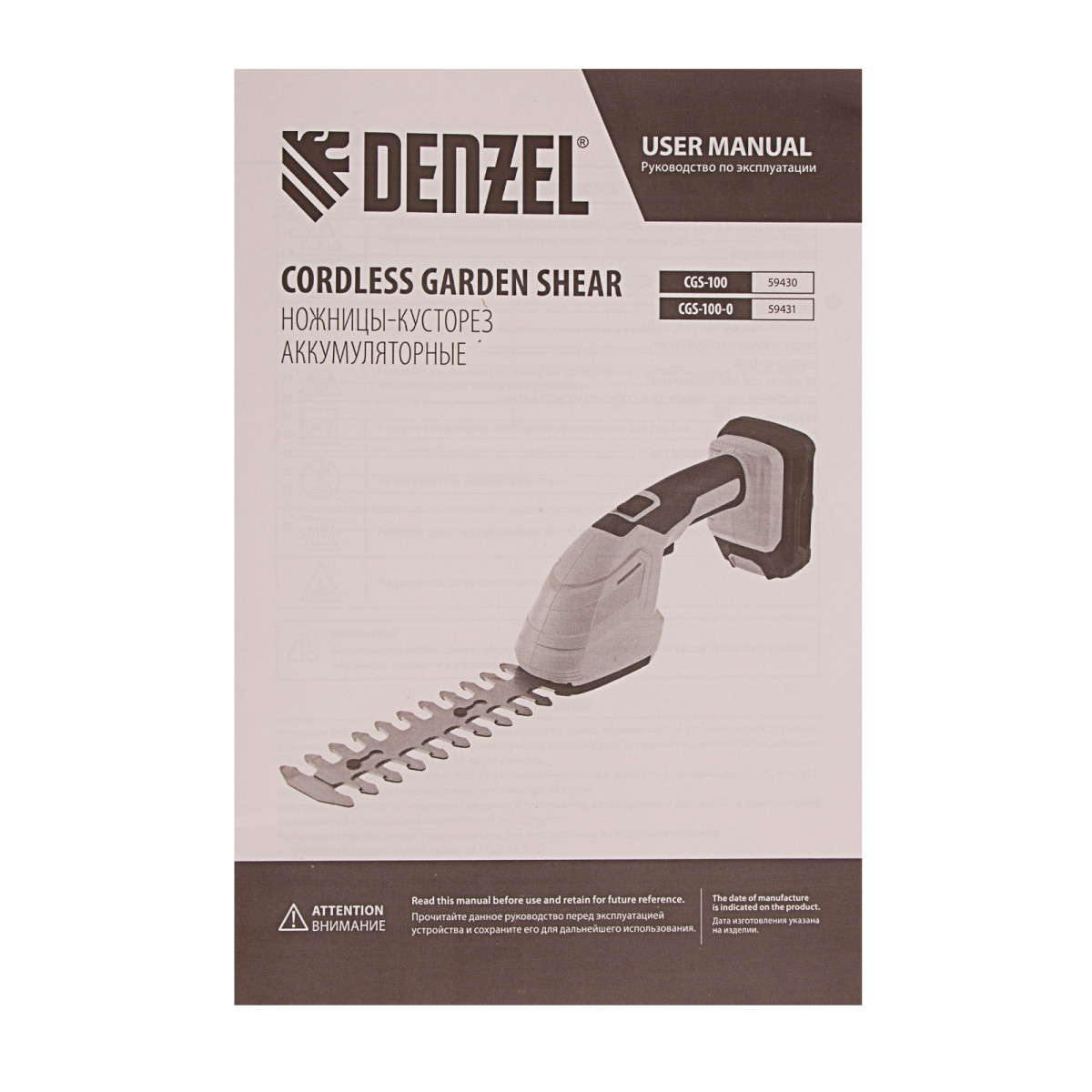 Ножницы-кусторез аккумуляторные  CGS-100, 18В Li-Ion Denzel