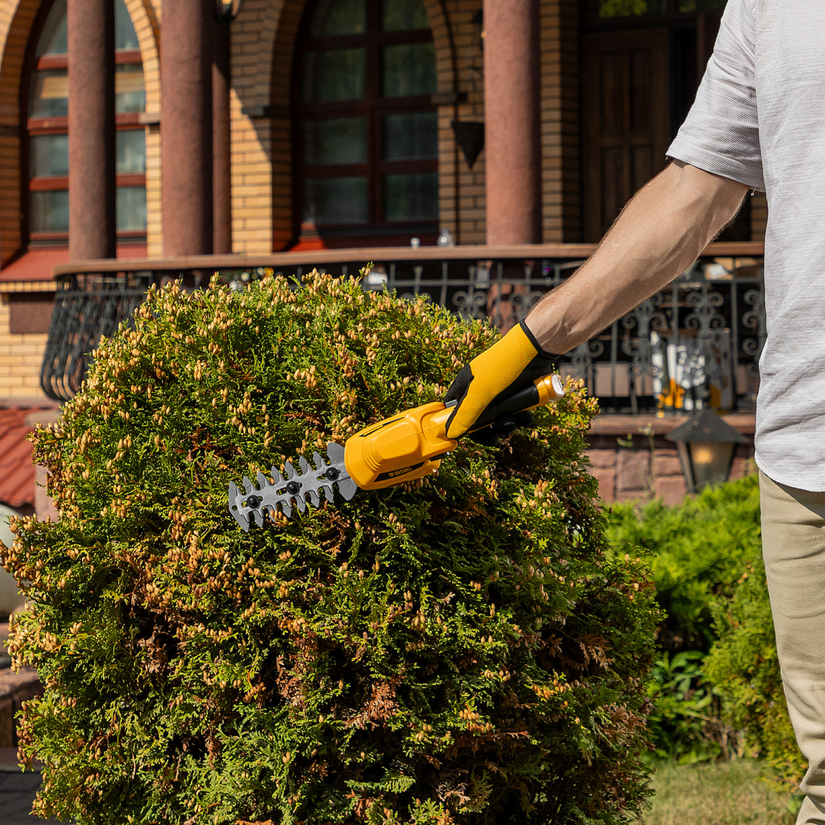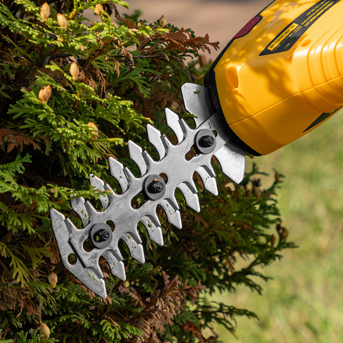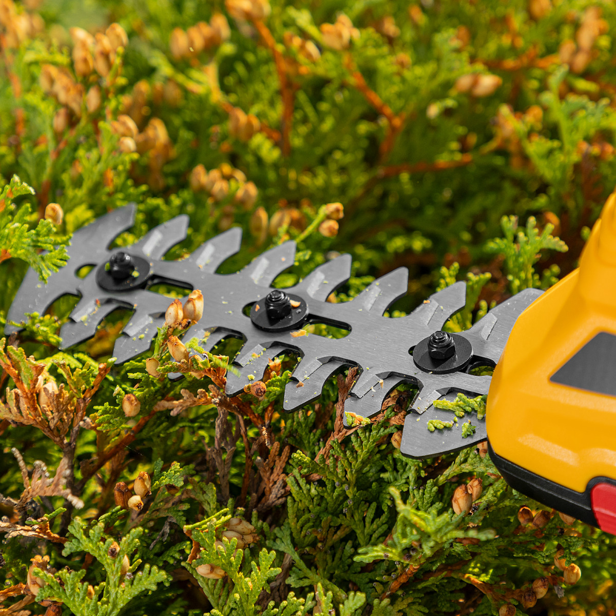 • Долговечность — медная обмотка двигателя устойчива к перегреву и обеспечивает стабильную работу ножниц-кустореза даже при высоких нагрузках.