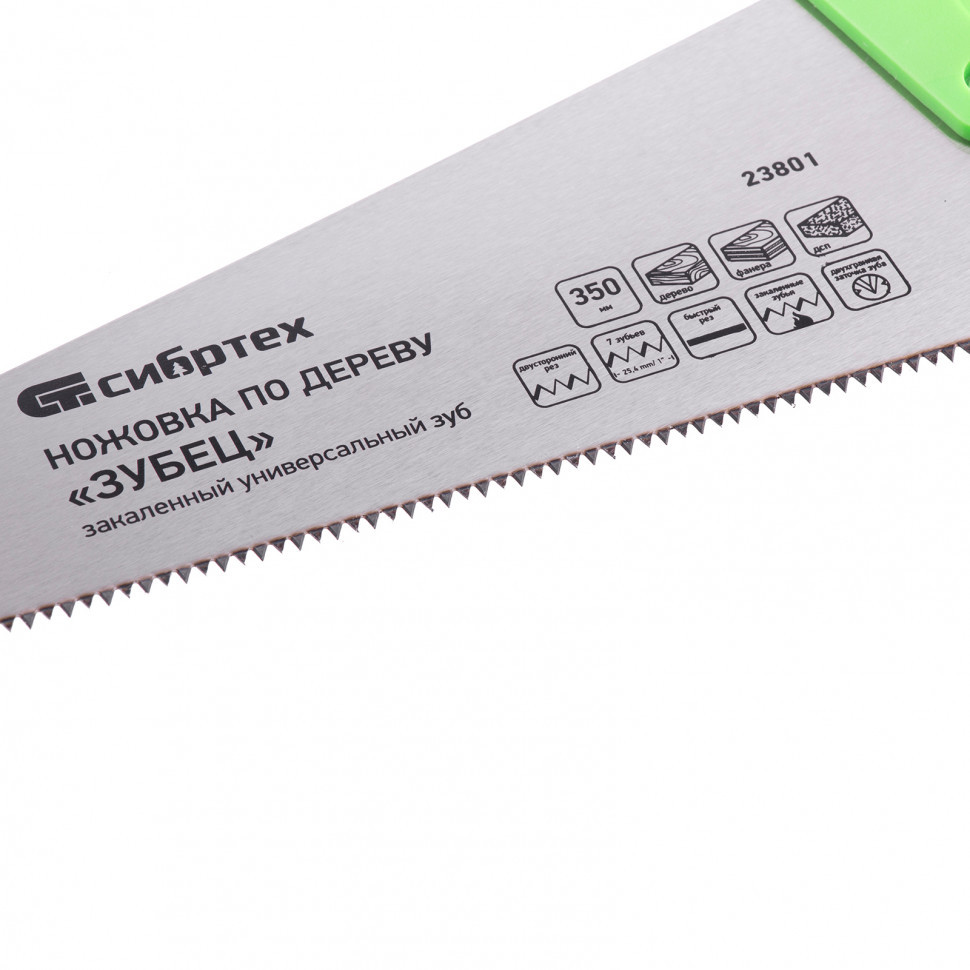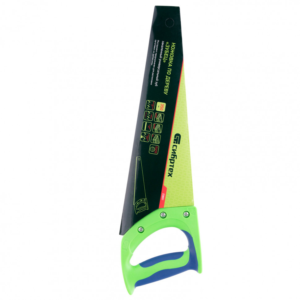 Ножовка по дереву "Зубец", 350 мм, 7-8 TPI, каленый зуб 2D, двухкомпонентная рукоятка Сибртех