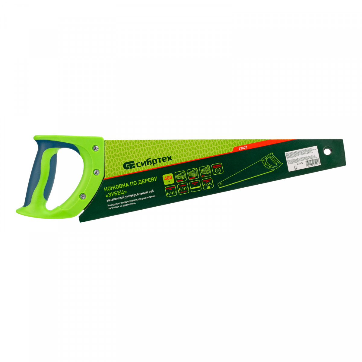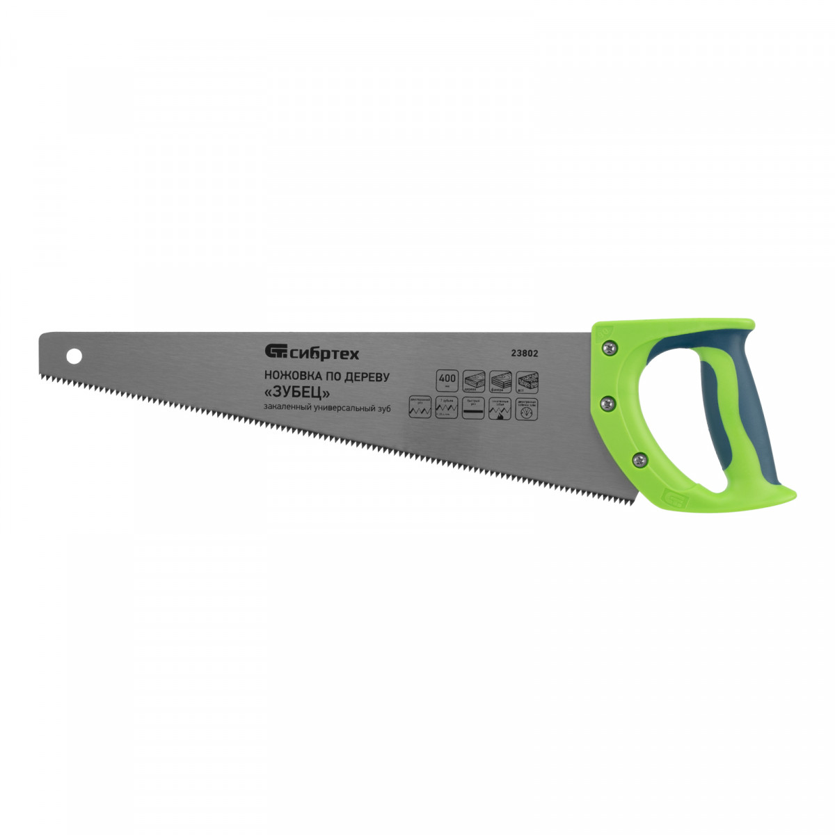 Ножовка по дереву "Зубец", 400 мм, 7-8 TPI, каленый зуб 2D, двухкомпонентная рукоятка Сибртех