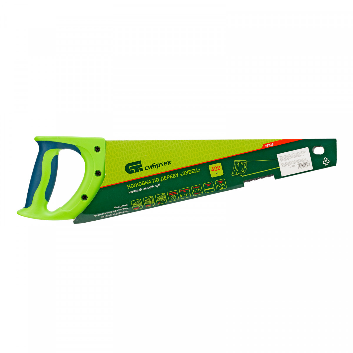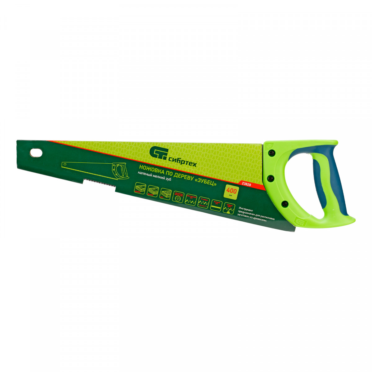 Ножовка по дереву Сибртех «Зубец» 23828 с полотном длиной 400 мм, калеными зубьями с 2D-заточкой и шагом 14 TPI, двухкомпонентной рукояткой, предназначена для точных пильных работ по древесине, фанере и ДСП. Подходит для двустороннего реза. Режущая часть с мелкими зубьями в количестве 14 на дюйм выполняет аккуратный и чистый распил. При необходимости кромку ножовки можно заточить. Инструмент будет полезен в столярной мастерской, а также пригодится в быту.