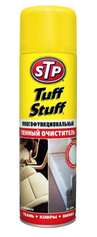 Пенный очиститель салона Tuff Stuff STP 81500RS предназначен для чистки тканевых, велюровых и ковровых покрытий в салоне автомобиля. Благодаря высокоэффективным поверхностно-активным компонентам в своем составе средство всего за 30-40 секунд справляется с пятнами от масел, жира, чернил, губной помады и другими трудновыводимыми пятнами. Пенный слой, который создает очиститель, удерживается на поверхности, не стекает и не впитывается, поэтому позволяет без труда очистить обивку сидений и дверей, потолок и ковровые покрытия. Средство восстанавливает цвет ткани и придает ему насыщенность, защищая поверхности от выгорания на солнце. Может использоваться в быту для чистки бытовых устройств, кухонного пластика, ванн и раковин, керамической плитки, окрашенных поверхностей, дерева, облицовки стен, экранов, жалюзи, оконных вентиляторов, фарфора, окрашенного дерева и металла. Объем - 500 мл.