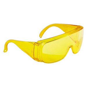 Очки выполнены из поликарбоната желтого цвета. Предусмотрена боковая и верхняя защита от летящих частиц со скоростью 45 – 120 м/с. Рекомендуются при защите от химических веществ (спиртов азотных и соляных кислот, скипидара, гидроокиси калия), ультрафиолетового излучения.