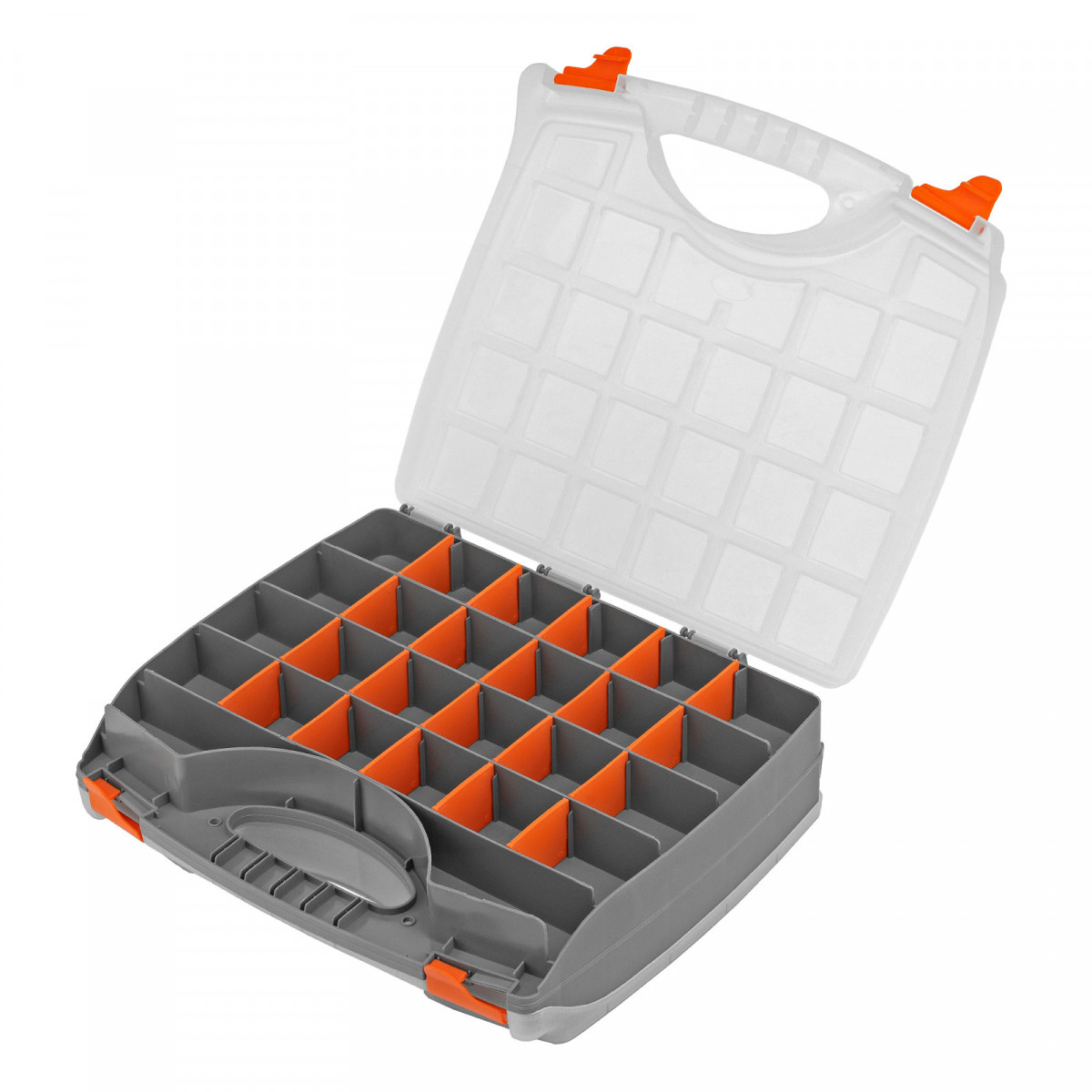- Защелки и ручка обеспечивают удобство транспортировки органайзера.