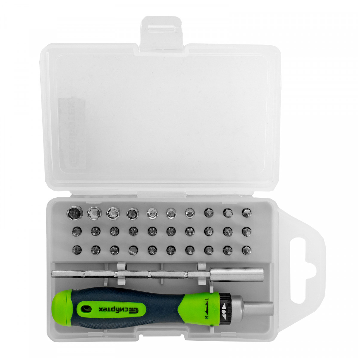 Отвертка реверсивная для точных работ с набором бит и торцевых головок, 32 предмета, CrV Сибртех