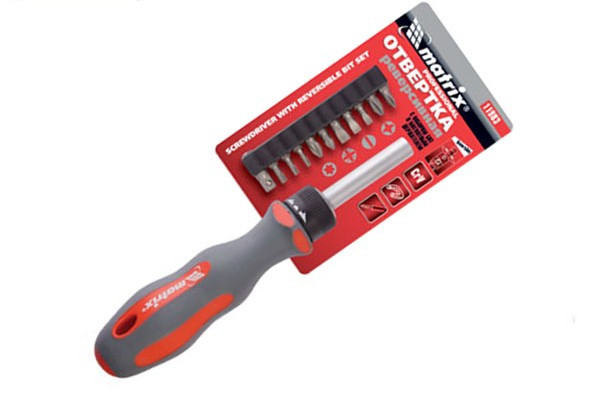 Отвертка реверсивная с набором бит 12 шт. магнитный держатель CrV MATRIX