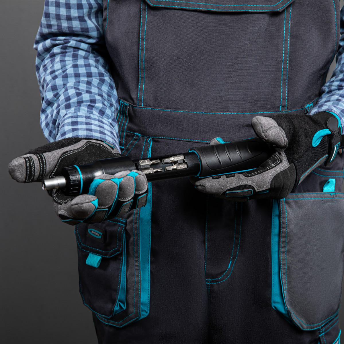 • Автоматическая подача насадок — магазин с револьверным механизмом позволяет максимально быстро и удобно менять биты.