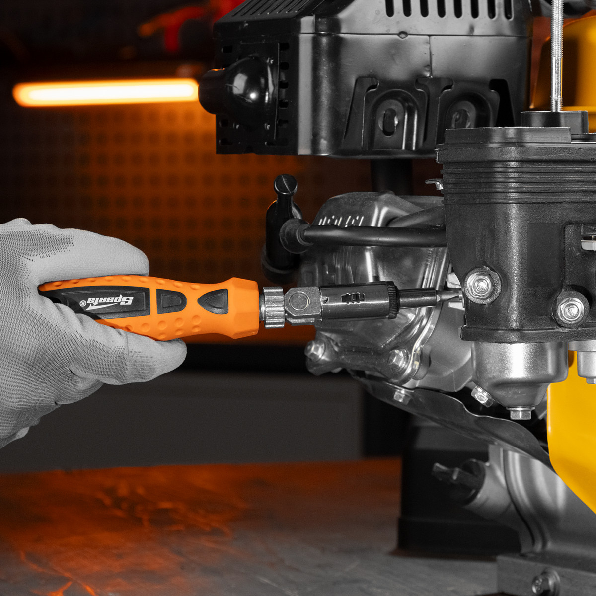 Реверсивная отвертка с шарниром Sparta 115545 входит в набор из 18 предметов, включающий также биты с хвостовиком 1/4 дюйма (тип С), торцевые головки и переходник для торцевых головок. Инструмент с насадками применяется для быстрого и эффективного монтажа/демонтажа резьбовых соединений. Реверсивный механизм значительно облегчает работу и снижает усталость рук, т.к. не требуется постоянно перехватывать ручку отвертки. С отверткой можно использовать любые биты длиной 25 мм. Комплект пригодится частным мастерам при проведении ремонтных работ.