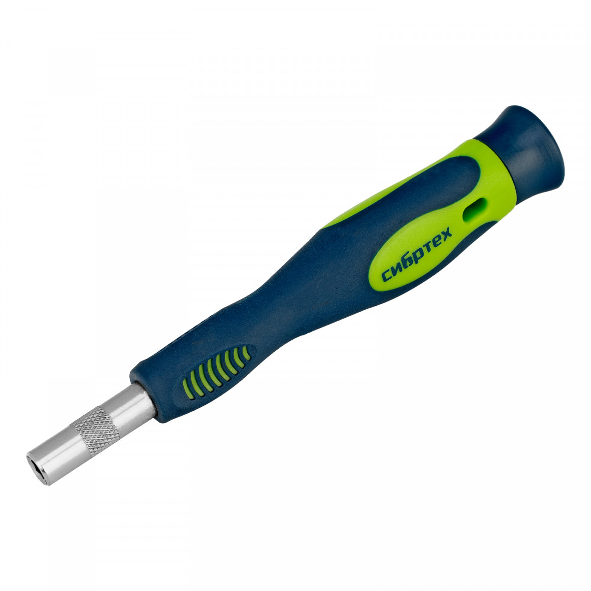 Реверсивные отвертки с набором бит и торцевых головок Сибртех 13338, 41 предмет, CrV, включает в себя насадки для работы с крепежом типа SL, PH, PZ, HEX, TORX и торцевые головки для монтажа/демонтажа гаек, болтов, саморезов. Также в нем есть отвертка и биты для точных работ, с помощью которых можно осуществить ремонт мелкой электроники, очков, детских игрушек и т.д. Удлинитель позволяет проводить работы в труднодоступных местах.