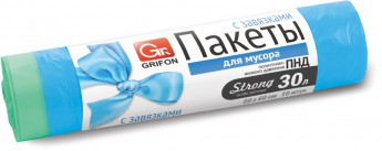 Мусорные пакеты GRIFON с завязками предназначены для утилизации пищевых и непищевых отходов. Они очень удобны в эксплуатации - при помощи специальной тесьмы можно затянуть пакет, предотвратив выпадение мусора и распространение неприятных запахов.