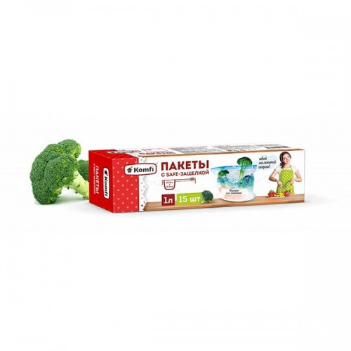 Пакеты с safe-защелкой 1л М 15шт в наборе Komfi