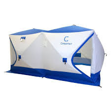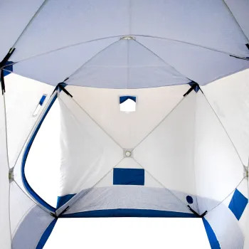 Палатка зимняя куб СЛЕДОПЫТ 3,8х1,9 м 2-х комнатная S по полу 7,2 кв.м 3 слоя цв. синий/белый