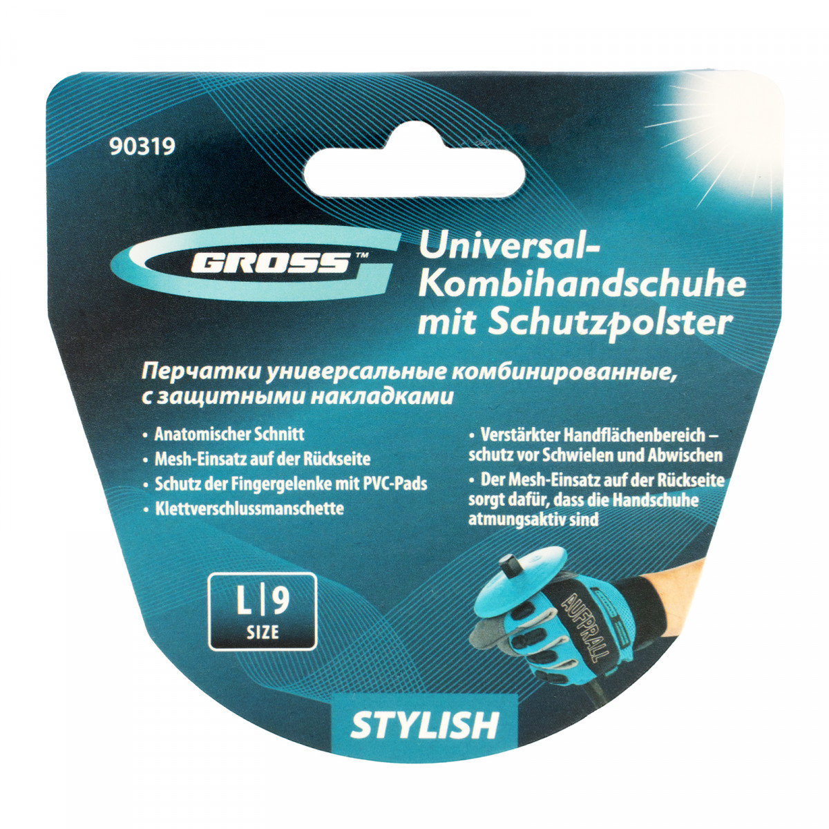 Перчатки универсальные комбинированные, с защитными накладками, STYLISH, размер L (9) Gross