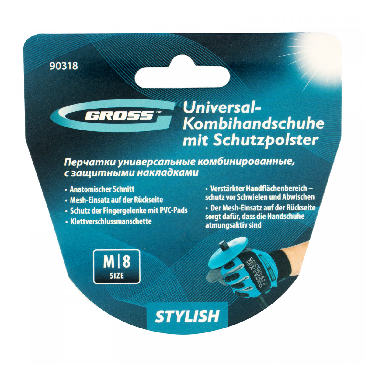 Перчатки универсальные комбинированные, с защитными накладками, STYLISH, размер M (8) Gross