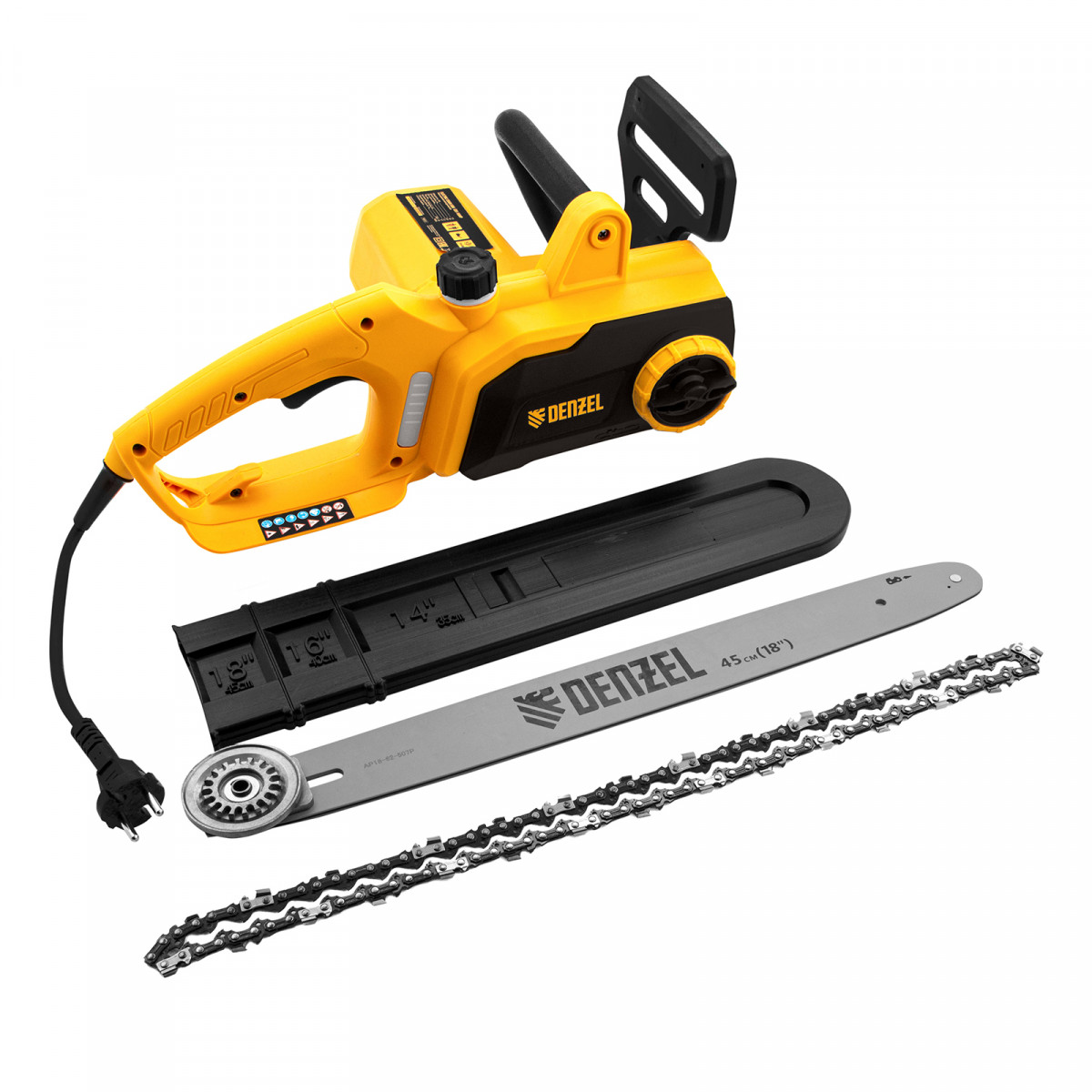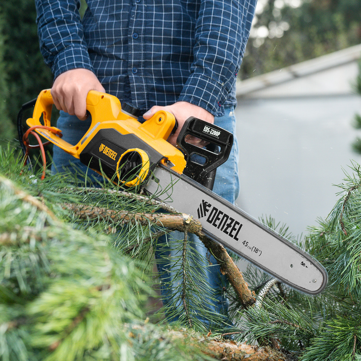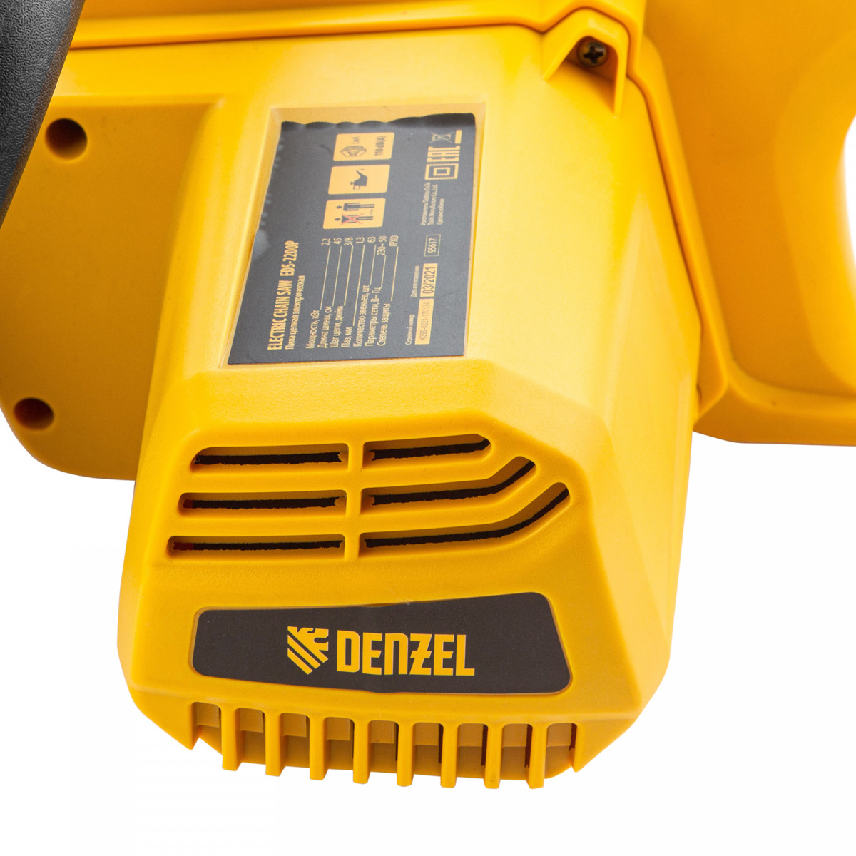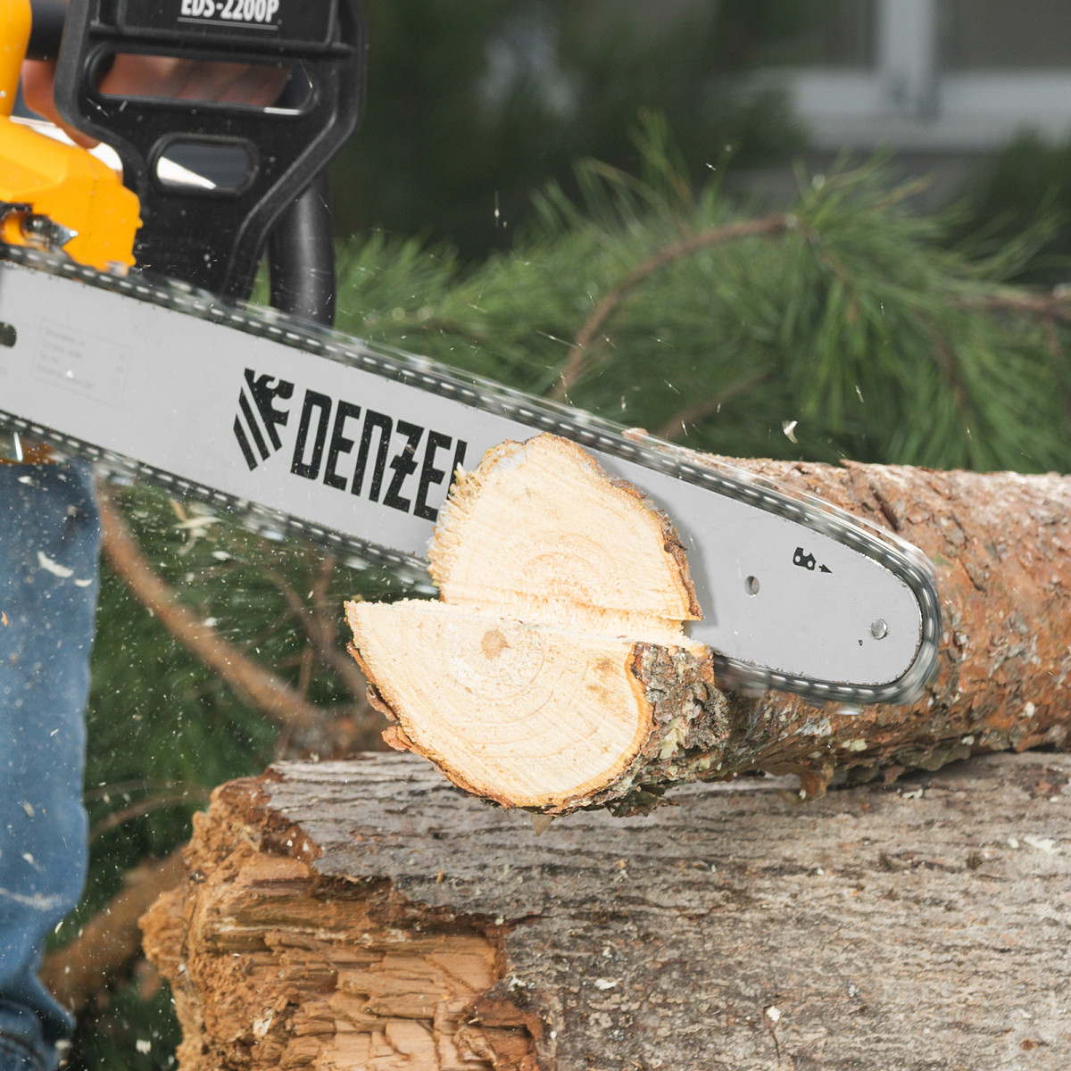 Пила цепная электрическая EDS-2200P, 2.2 кВт,поперечная, шина 45 см, шаг 3/8, паз 1.3 мм, 63 звена Denzel