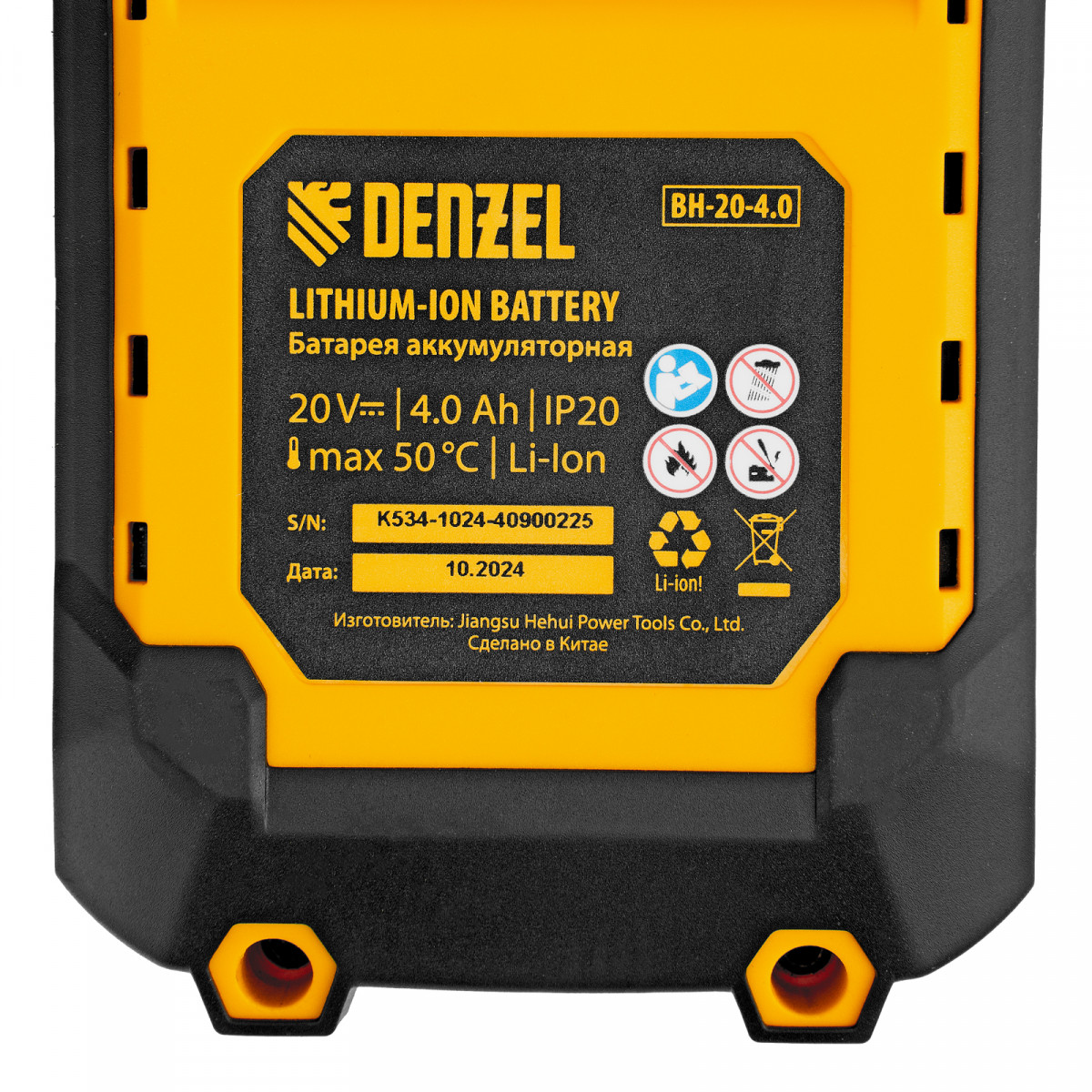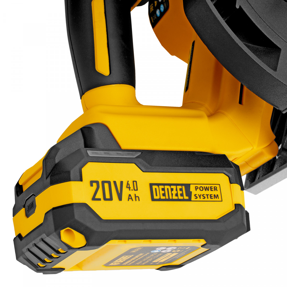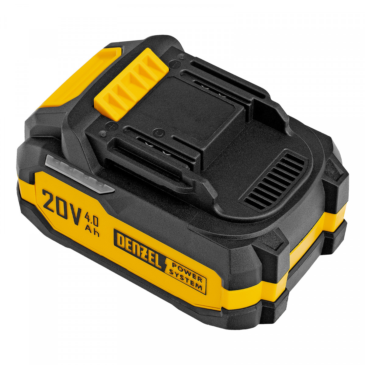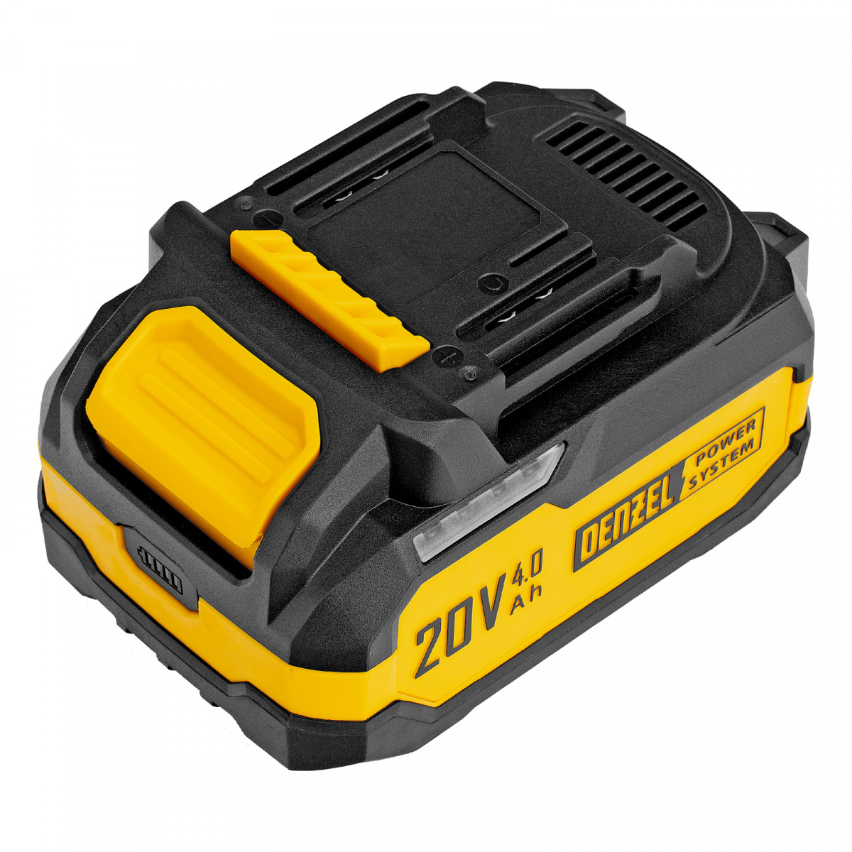 • Универсальный источник питания — аккумулятор Li-Ion емкостью 4 А·ч совместим со всеми инструментами единой платформы Denzel Power System 20V.
