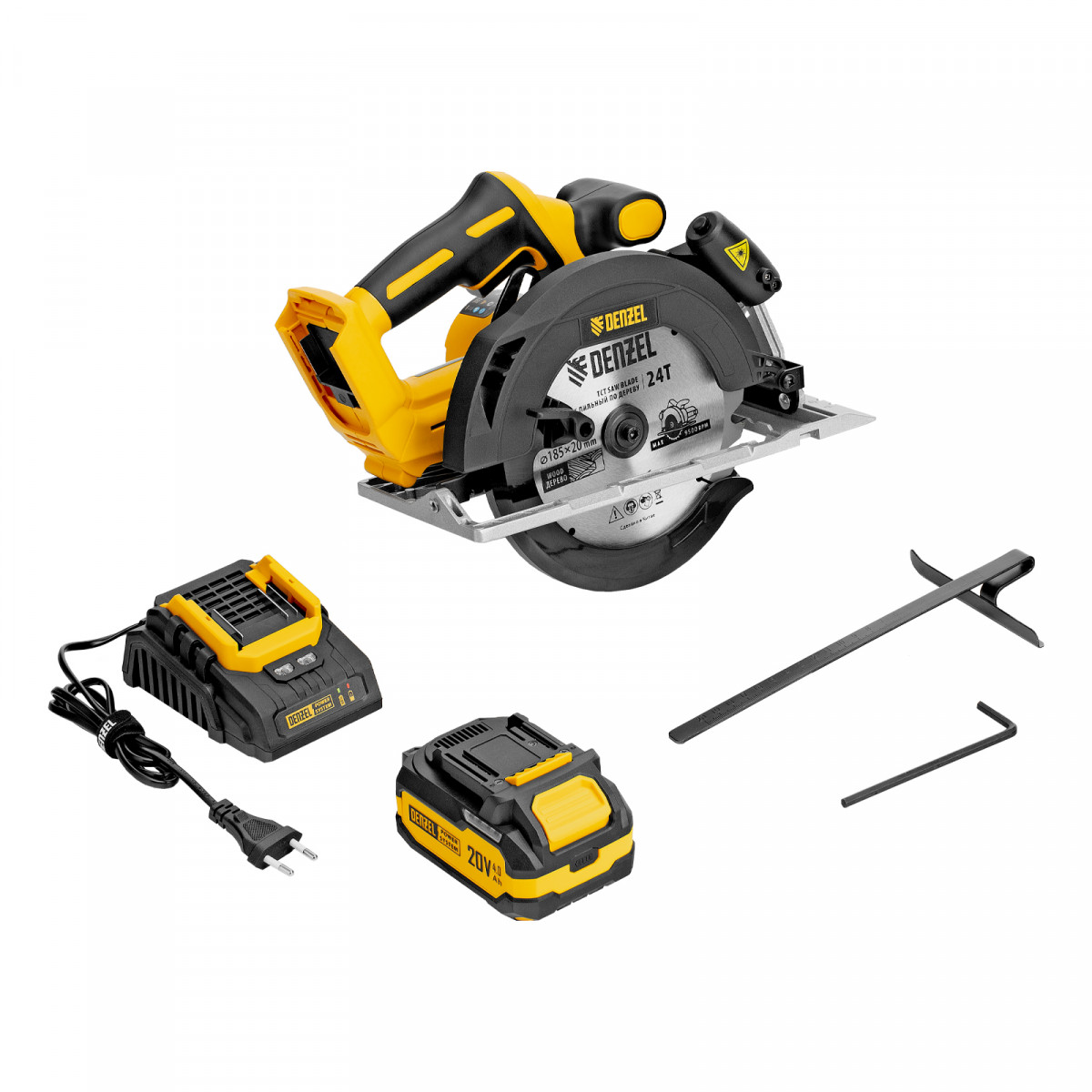 Пила циркулярная аккумуляторная - 1 штБатарея аккумуляторная - 1 штЗарядное устройство - 1 штДиск пильный - 1 штКлюч шестигранный - 1 штПараллельная направляющая - 1 штРуководство по эксплуатации с гарантийным талоном - 1 шт