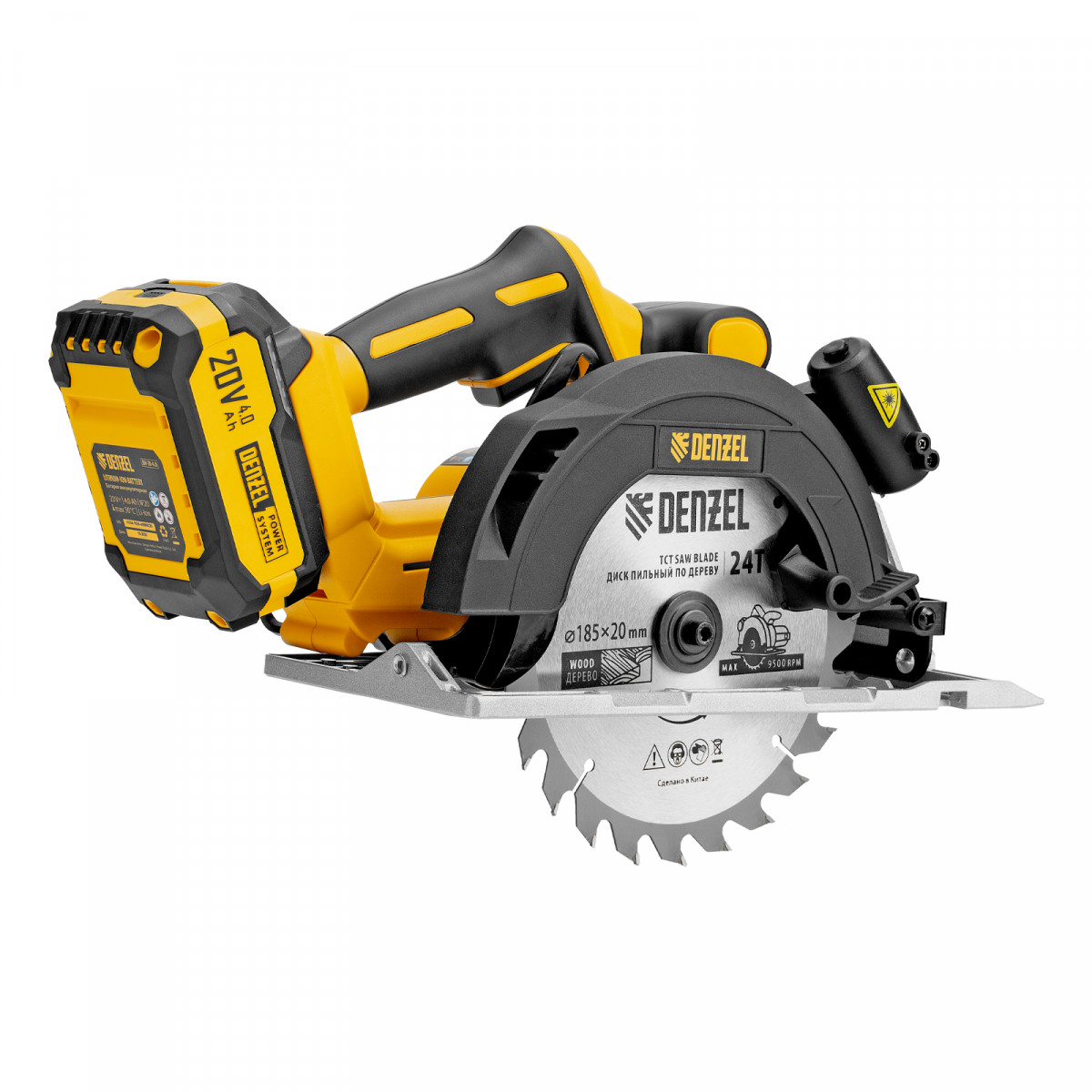 Пила циркулярная аккумуляторная бесщет. CCSH-BL-20-185, 185 мм, Li-Ion, 20 В// Denzel