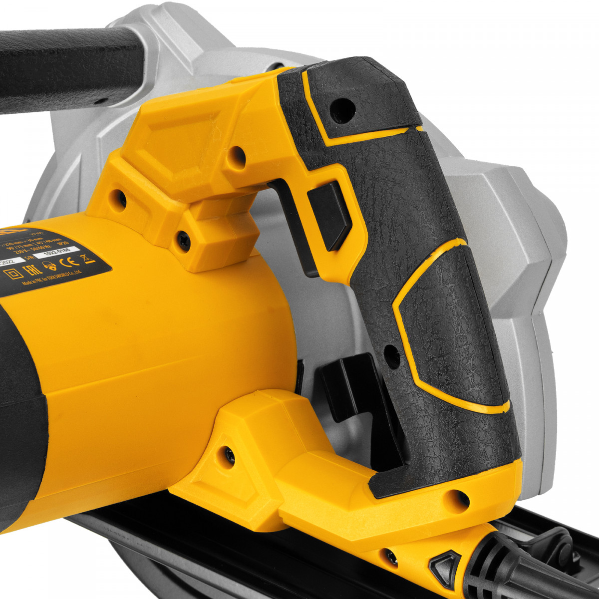 • Дополнительная рукоятка — инструмент удобно удерживать второй рукой, что минимизирует риск соприкосновения с пильным диском.