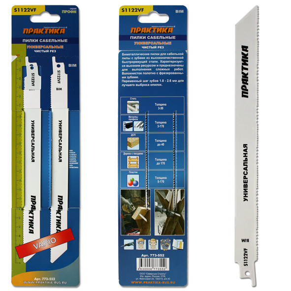 Пилки сабельные по дереву/металлу/пластику шаг 1,8-2,6 мм, длина 225 мм (2шт.) ПРАКТИКА